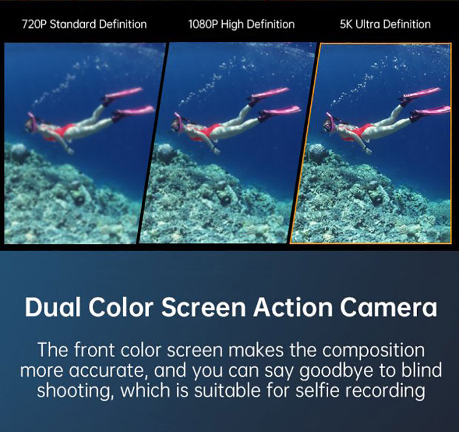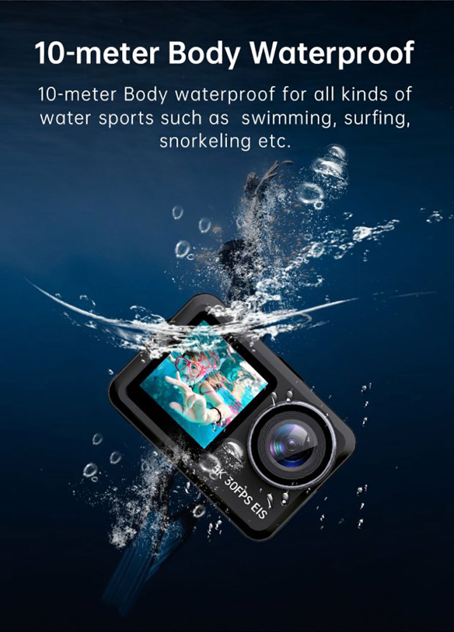 Body Waterproof:Take your adventures underwater with full waterproof protection, allowing you to shoot worry-free up to 5 meters deep!