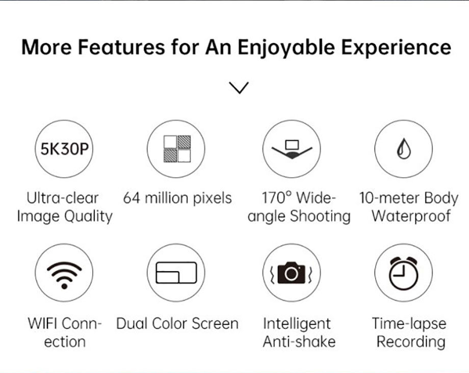 Video Resolution:Capture cinematic footage with 5K at 30fps or super smooth action shots in 4K at 60fps for the ultimate video quality!