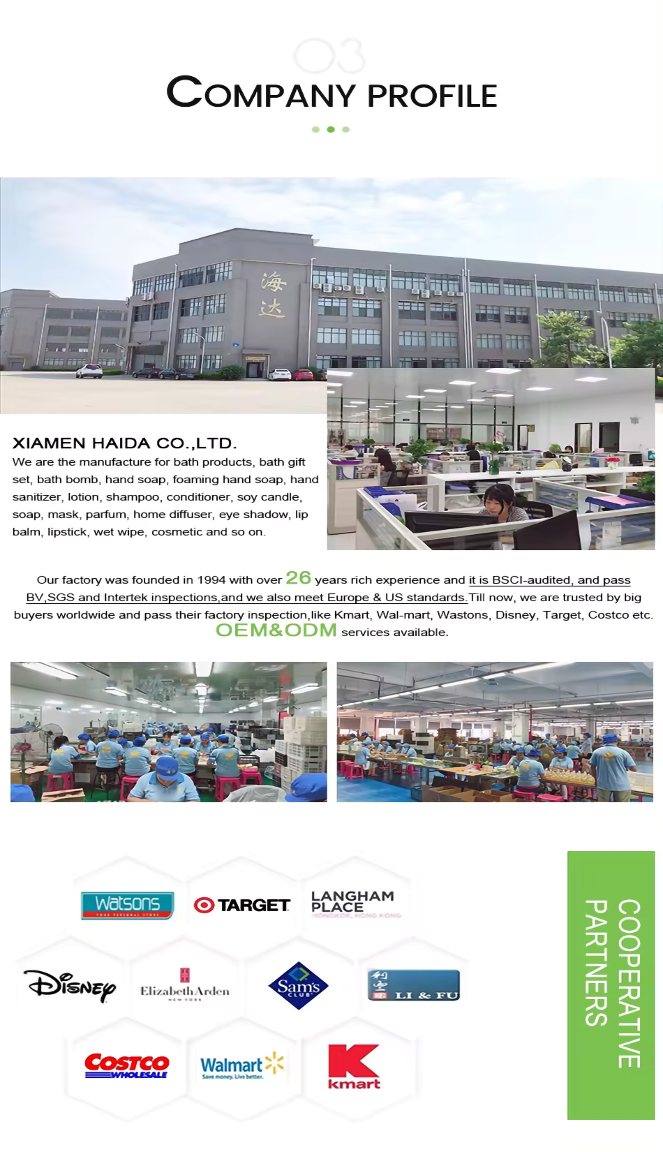 A:Our factory was established in 1994. Up to now, we have more than 27 years rich experience in bath and skin care field, pure soy candle as well.