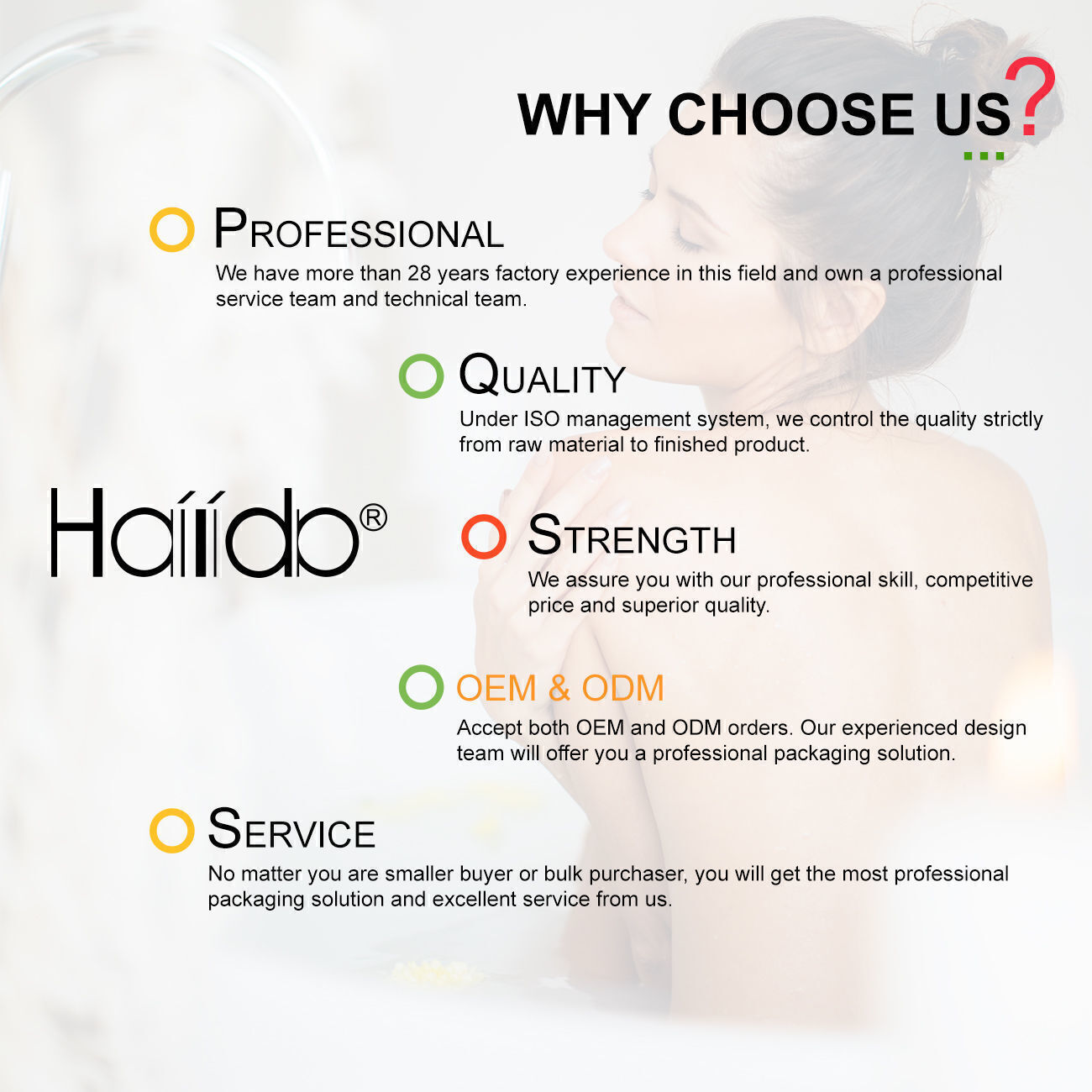 A:We are manufacturer with export license. Our factory was founded in 1994 with more than 28 years rich experience in bath and body care products, covers an area of 13500m².