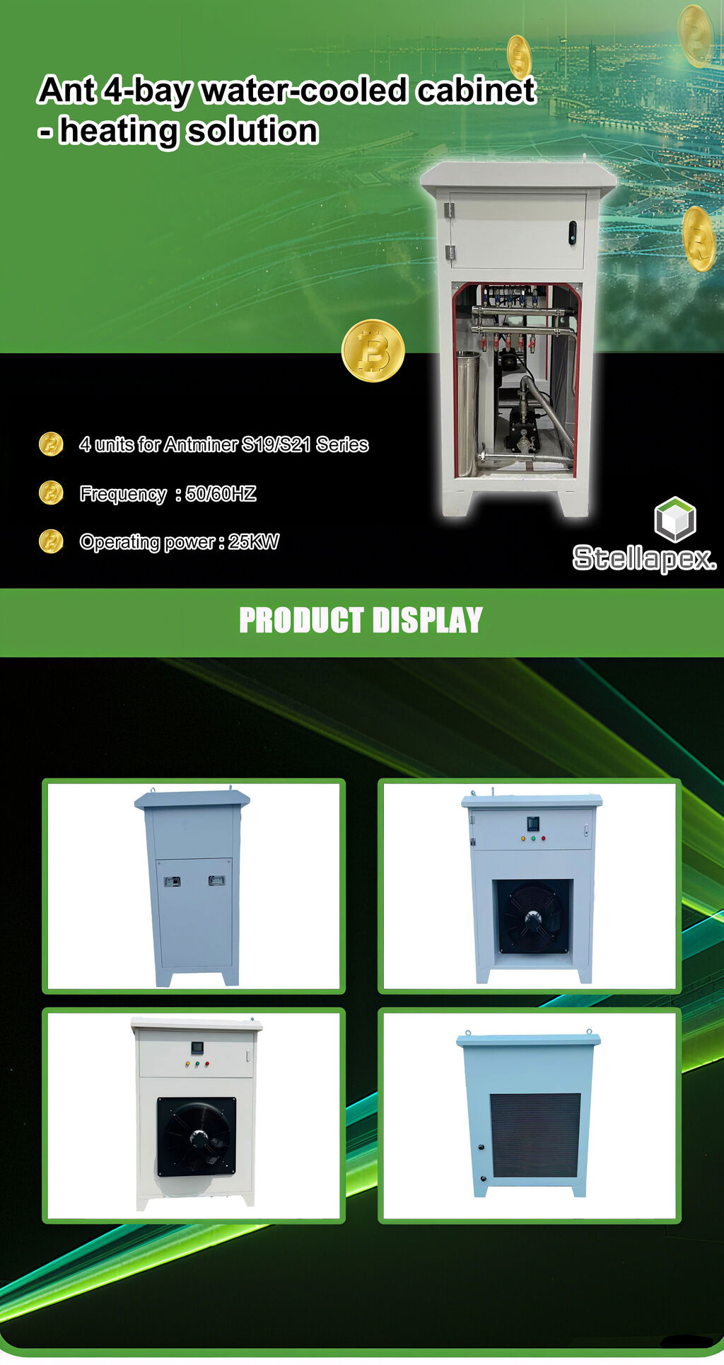 | Miners Capacity | 4* Antminer s19 / s21 hyd. |