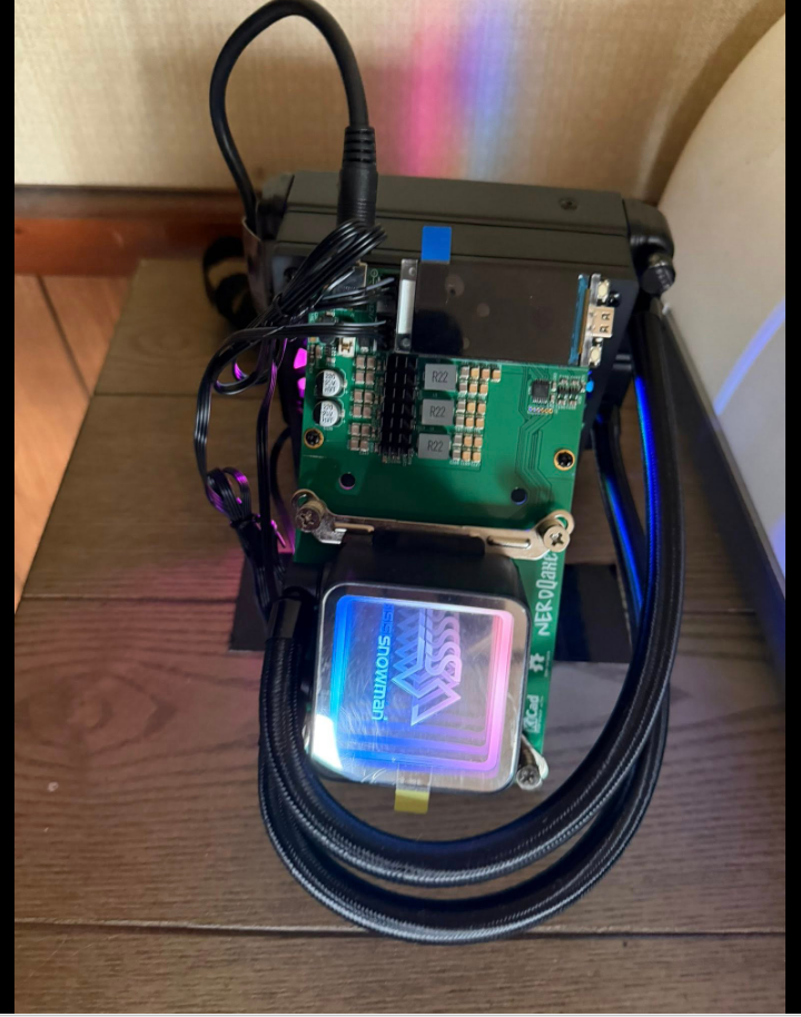 The NerdQaxe++ Hyd 4.8T is a high‑efficiency, hydro‑cooled SHA‑256 Bitcoin miner engineered for silent, stable, and long‑term home mining. Built around four cutting‑edge BM1370 ASIC chips (the same as in flagship Antminer S21 series), it delivers a rock‑solid 4.8 TH/s hashrate at an ultra‑low power draw of 72–76W, with industry‑leading efficiency of ~0.016 J/GH.
