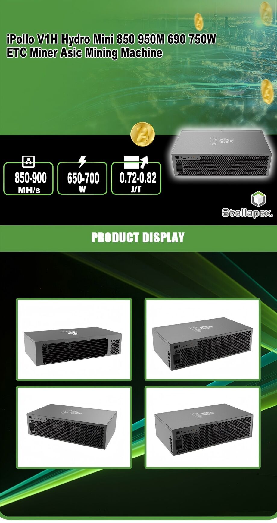 Hashrate & Energy Efficiency Hashrate: Estimated 850–900 MH/s (±5%), optimized for Ethash/Etchash algorithms, supporting multi-coin mining (e.g., ETC, ETHW). Represents a >40% hashrate increase over air-cooled models like V1 Mini SE (200 MH/s), meeting high-density computing demands . Power Efficiency: 650–700W power consumption achieves ≈0.72–0.82 J/MH, significantly outperforming air-cooled competitors (e.g., Yami mini200’s 0.9 J/MH) and enhancing viability in high-tariff regions . Power Consumption & Cooling Power Consumption: 650–700W with 100–240V AC wide voltage input, compatible with residential circuits. Daily consumption ≈16.8 kWh . Cooling System: Closed-loop water cooling maintains ≤45dB noise (Silent Mode), supporting operation in 10–35°C environments (40% wider range than air-cooled models), eliminating thermal throttling risks .