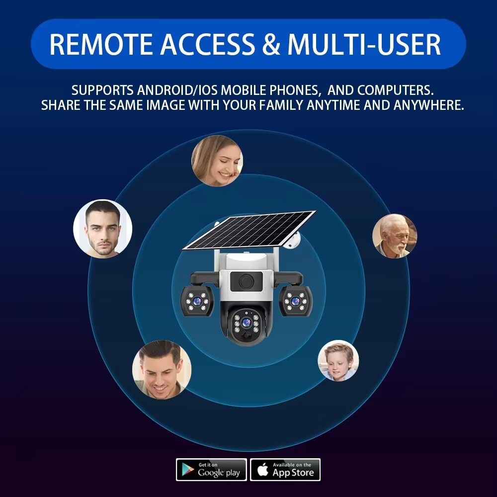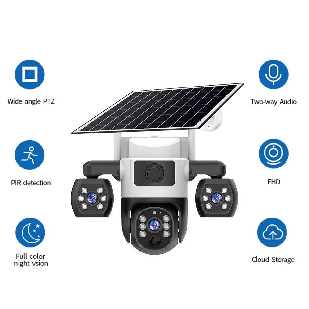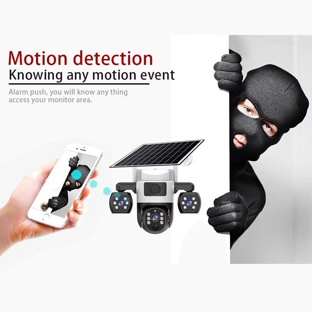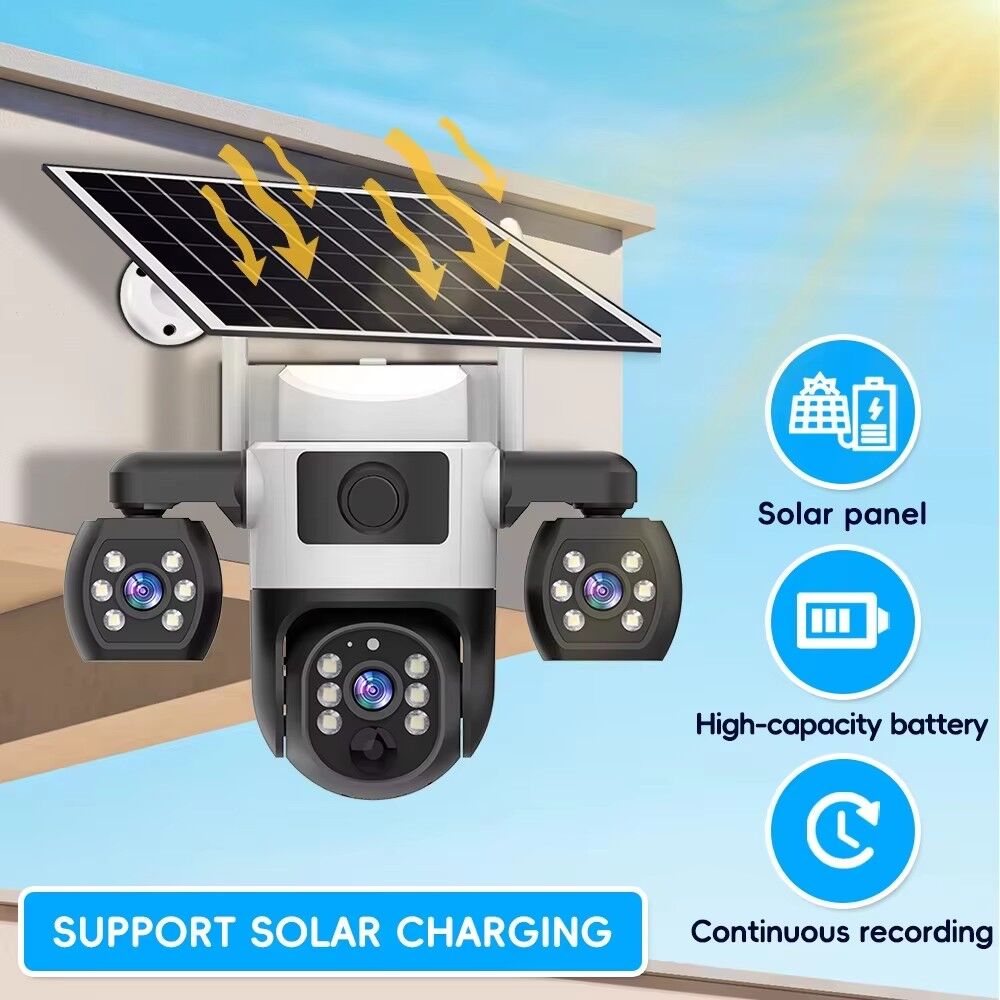 The V380 Pro Security Solar Camera is a high-performance outdoor surveillance solution designed to meet all your safety monitoring needs, whether for home, property, or small business use. Equipped with three lenses and three screens, this outdoor CCTV camera delivers a 360° viewing angle, ensuring no blind spots in your monitoring area—you can easily cover wide spaces like yards, driveways, or warehouse perimeters without missing any details.