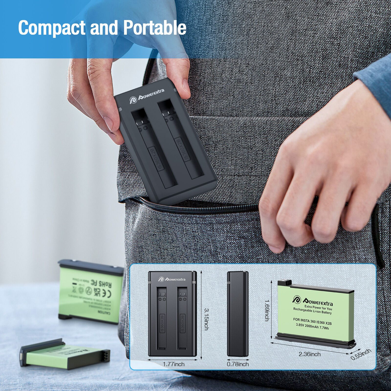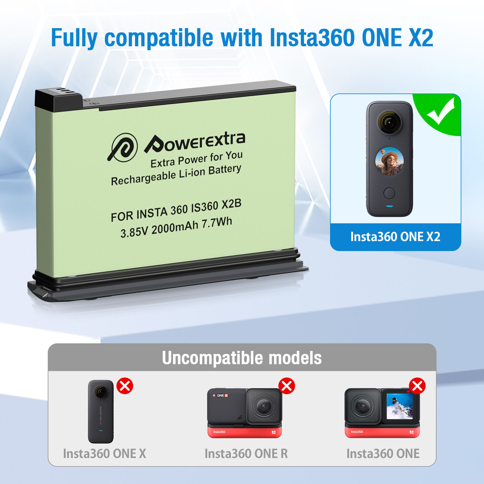 - ✔ Safe Charge & No Memory Effect: Powerextra ONE X2 battery combined with the newest generation of CPU control, IC chip, double PCB panel to deliver super power for improved performance. Features with four layers of protection (over-charging, short-circuit, high-temperature, and surge protection). Can be charged or discharged at any time without harm.