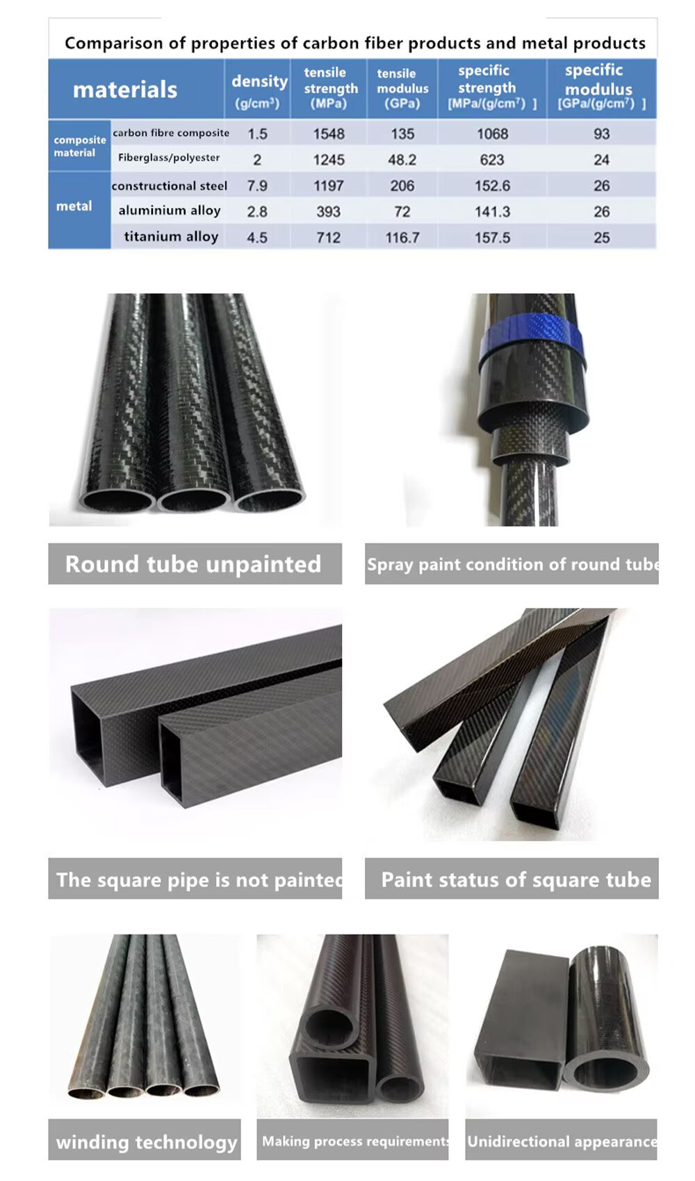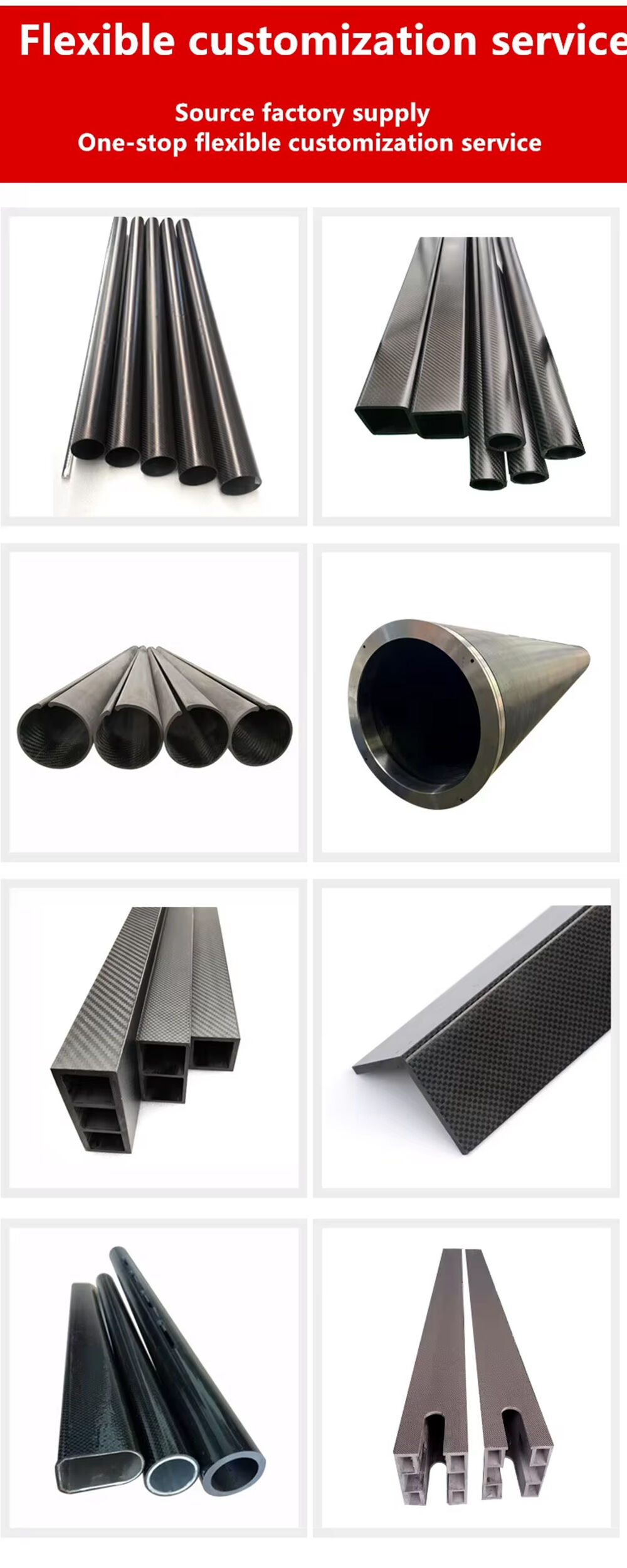 Carbon fiber tube, also known as carbon fiber tube, also known as carbon tube, carbon fiber tube, is made of carbon fiber composite material pre-immersed in styrene based polyester resin by heating curing pultrusion (twisting). In the process of making, various profiles can be produced through different molds, such as: carbon fiber round tubes of different specifications, square tubes of different specifications, sheets of different specifications, and other profiles: 3K can also be packaged in the production process for surface packaging and so on.