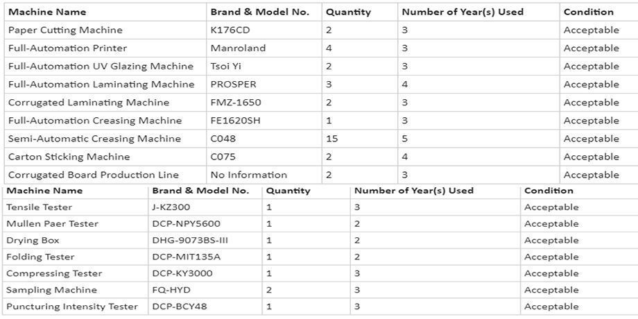 • Our production Machinery and Testing Machinery as below: Production Machinery & Testing Machinery