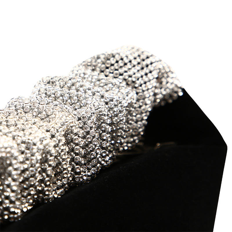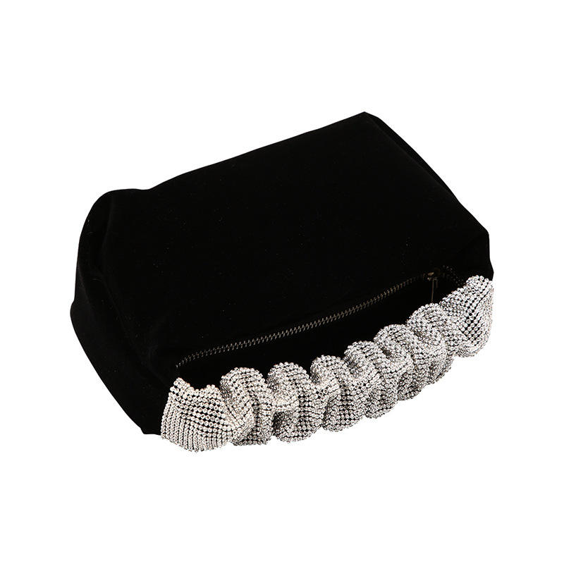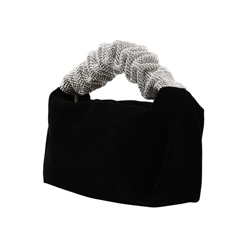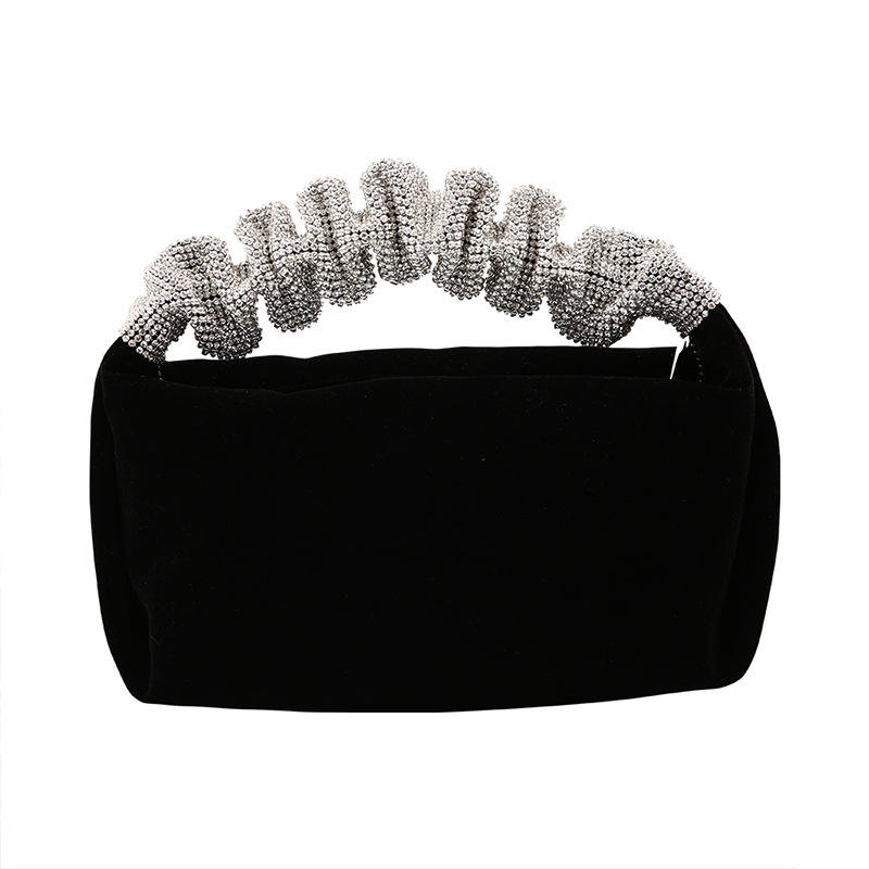 Black handmade handbag with wrinkle rhinestone handle Retro Velvet Clutch Bag Elegant Evening Purse for Wedding Prom Party