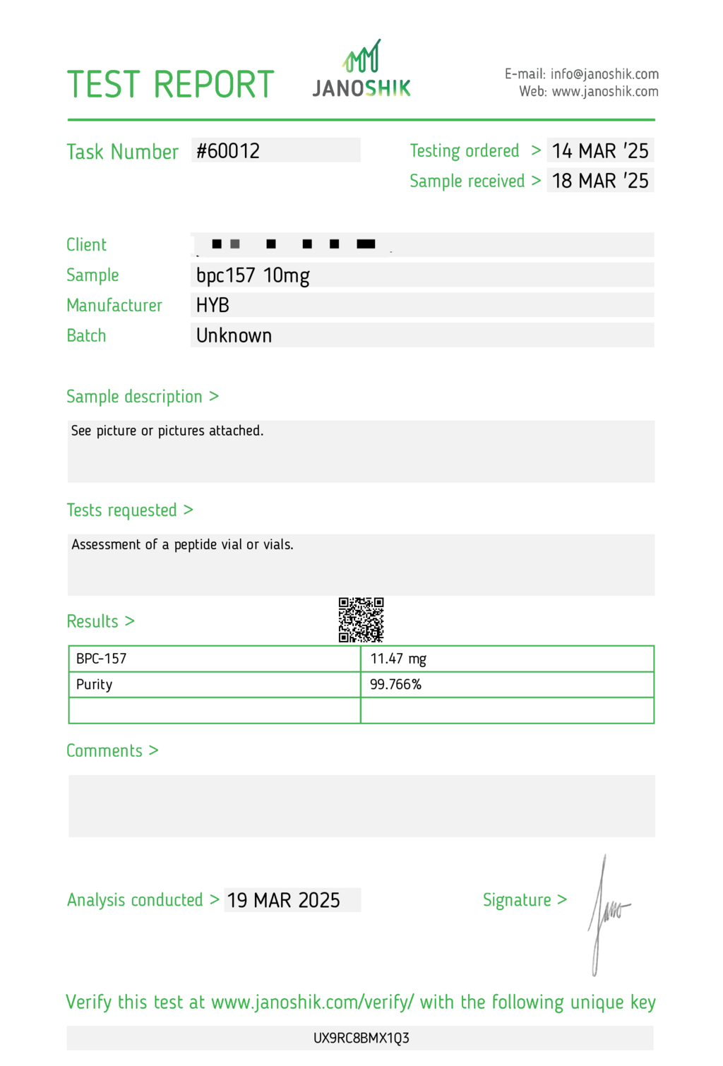 We offer high-quality peptide products. All products come with an analysis certificate (COA), which can be used for laboratory testing.