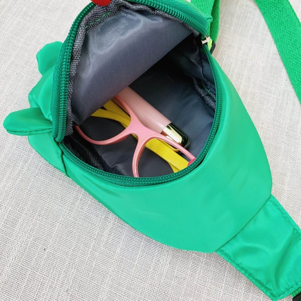 This adorable dinosaur-themed chest bag is designed to bring fun and functionality to your little one's daily adventures! Made from durable, lightweight nylon fabric, it’s perfect for carrying small toys, snacks, or personal items while on the go. The playful dinosaur design with vibrant green color and cute details will make it your child’s new favorite accessory.