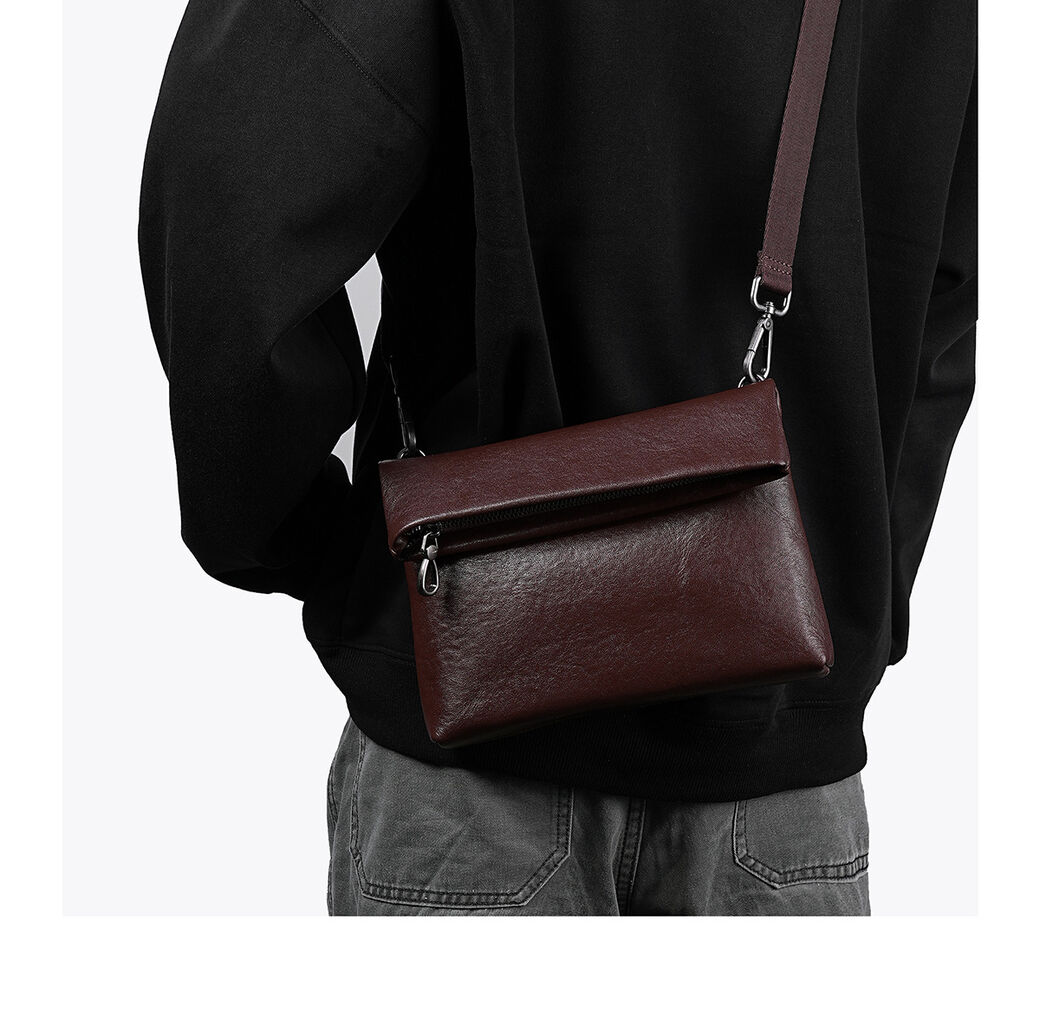 This leather sling bag is designed with careful stitching and sturdy metal hardware, ensuring long-term durability even with frequent use. Its timeless silhouette and neutral leather tone make it suitable for various markets, especially appealing to men seeking a refined yet practical everyday bag.