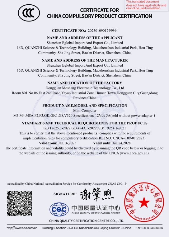 | Standard: | 1x Mini PC, 1x Power Adapter, 1x Power Cord |