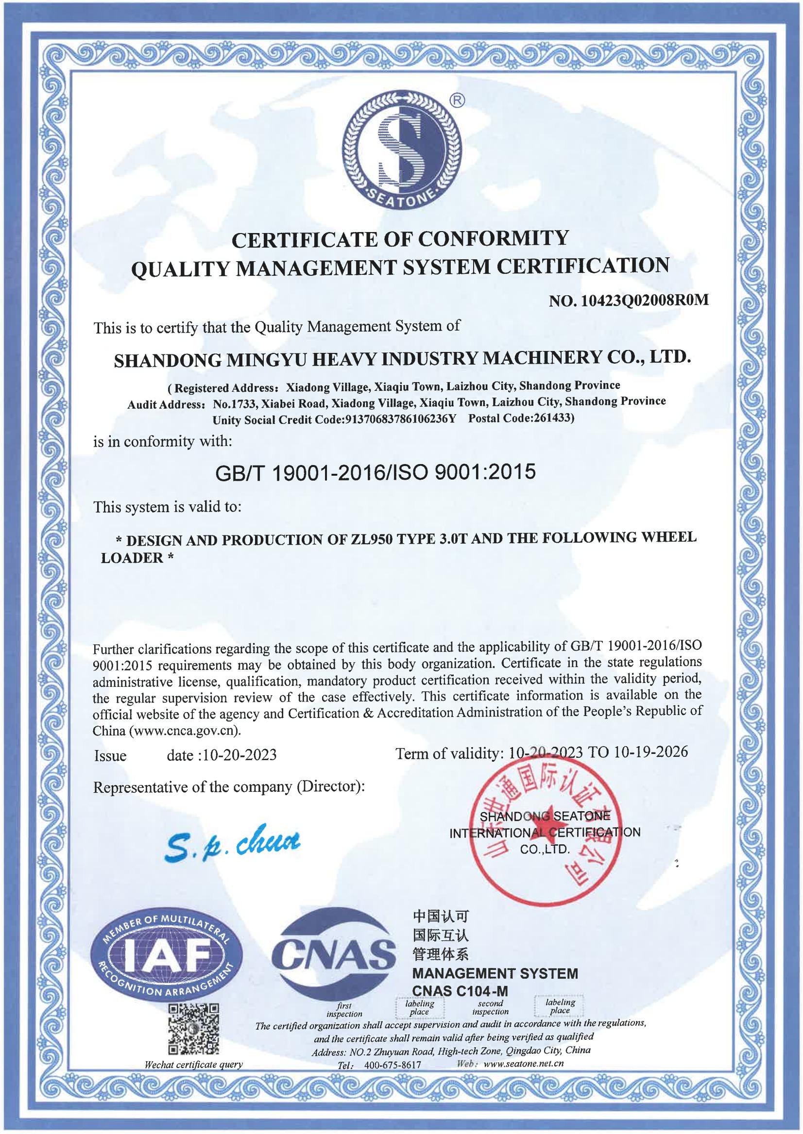 Shandong Mingyu heavy industry machinery co.,ltd. Shandong Zhuogong Machinery equipment Co.,Ltd. Laizhou Zhuo Kun Import And Export Trading Co.,Ltd.(MYZG) was founded in 1996. Since then, MYZG has stood at the forefront of the Chinese small heavy machinery industry and developed into one of the most influential, and the most competitive enterprise groups with the complete product varieties and series. Every machine produced by Mingyu has to undergo several rigorous tests, and it can be finally delivered to customers only after all tests are completed and qualified.