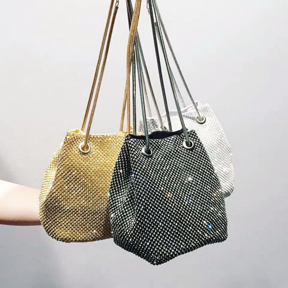 Wedding Party Fashion Luxury Bling Rhinestone Bucket Evening Bag Vintage Trendy Evening Diamond Clutch Bag