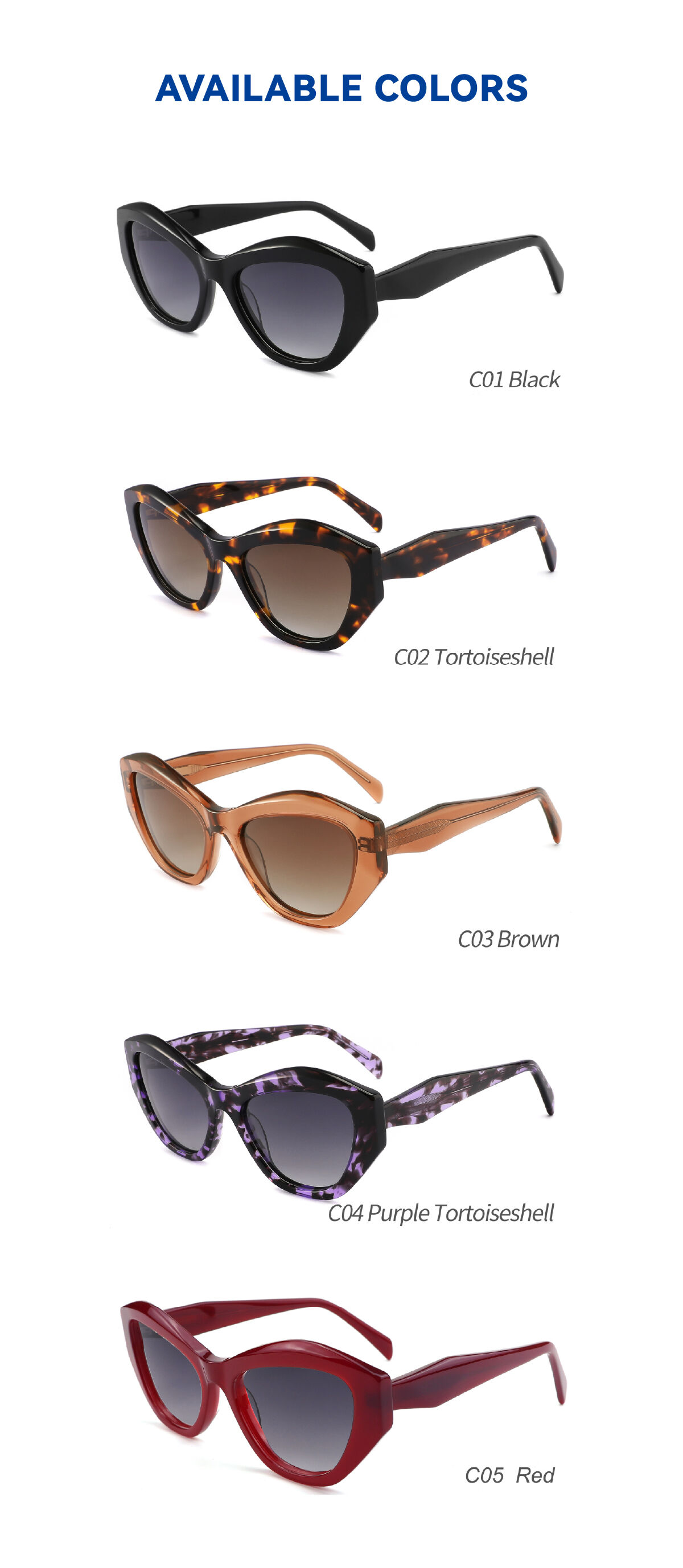 A: Yes, please let us know the product type (sunglasses or eyeglasses frames), frame material, and target price.
