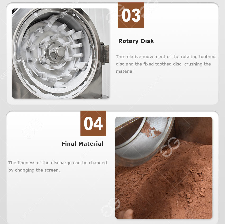 This Chili Powder Making Machine used the relative motion between movable and fixed teeth disc, the raw material to be crushed undertakes the comprehensive action such as impacted by teeth, friction , impacted between raw material, finally the raw materials are crushed. Its features are simple and solid in structure, stable in operation, high in crushed efficiency. The crushed raw material can be discharged through the grinding chamber. Moreover, different size of raw material to be crushed can be got through changing screen with different mesh.