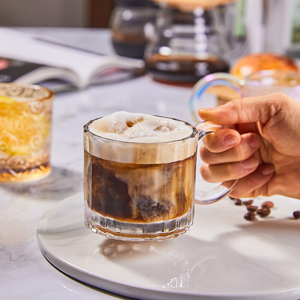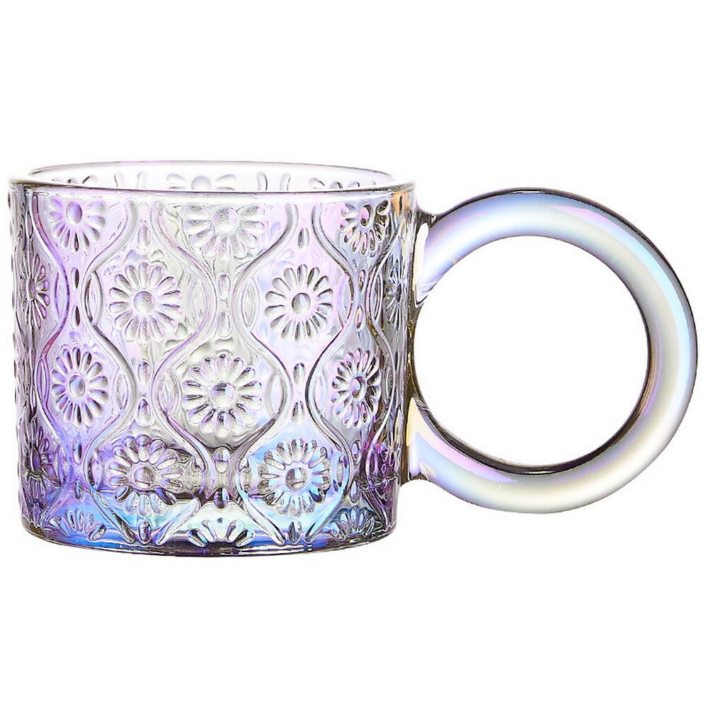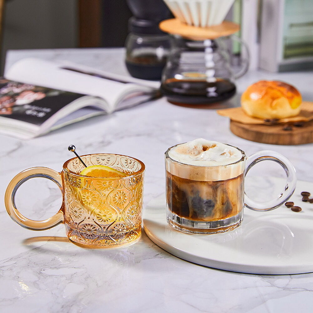 Vintage Glass Sunflower Embossed Glass Coffee Cup colorful Glass Coffee Mug With Handle