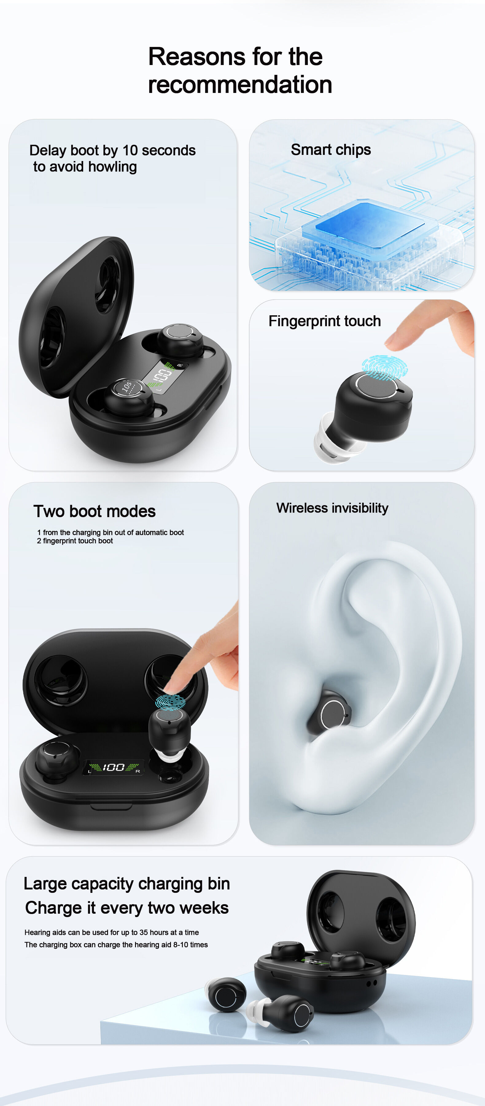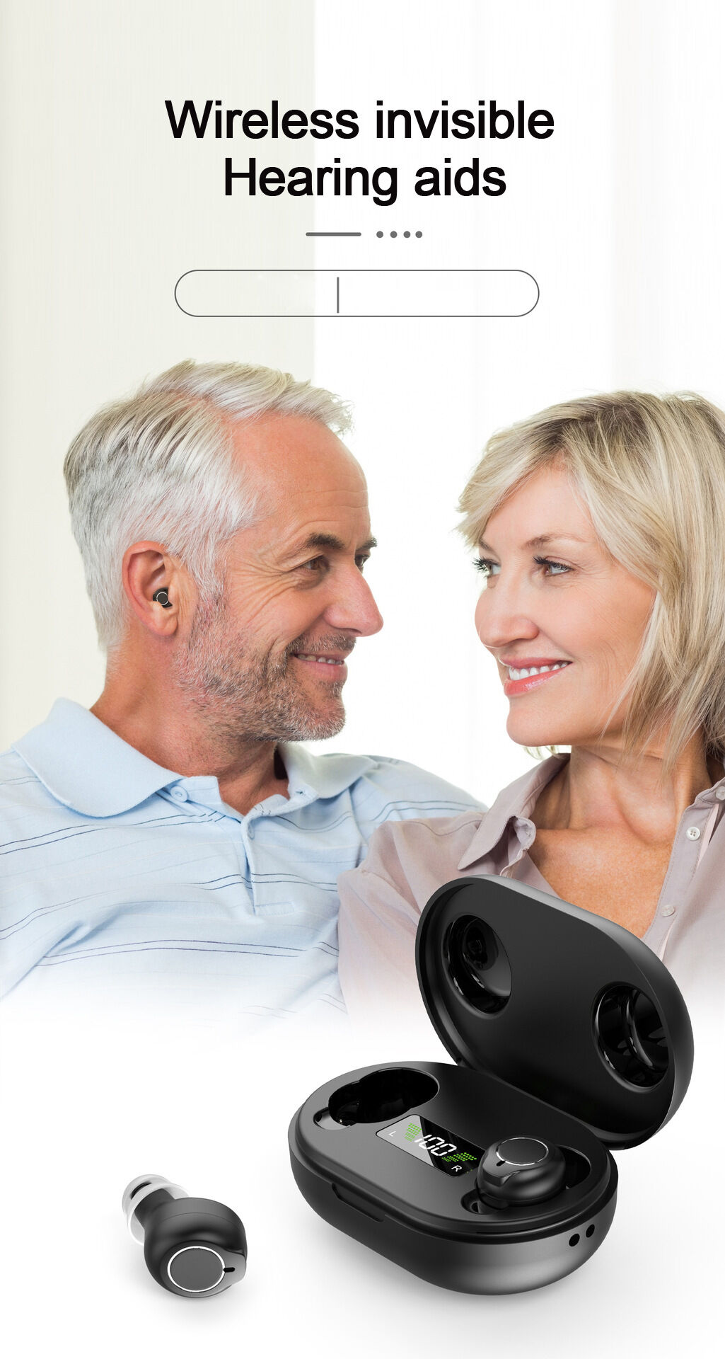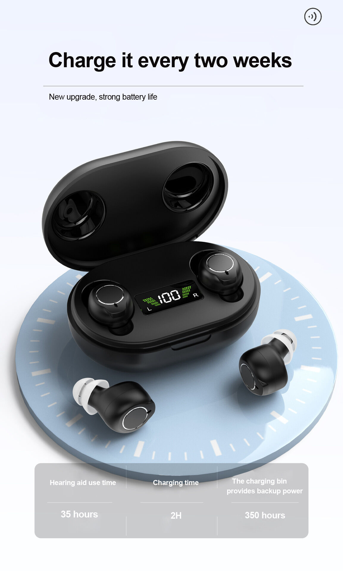 Newest Private shaped OEM in ear comfortable Heading aids earplug with charging bin and digital power display for Home and outdoor.