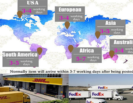 A: We ship the package by FedEx. Normally, 2-3 business days to USA. 3-4 business days to UK. 5-6 business days to Afirca and other countries.