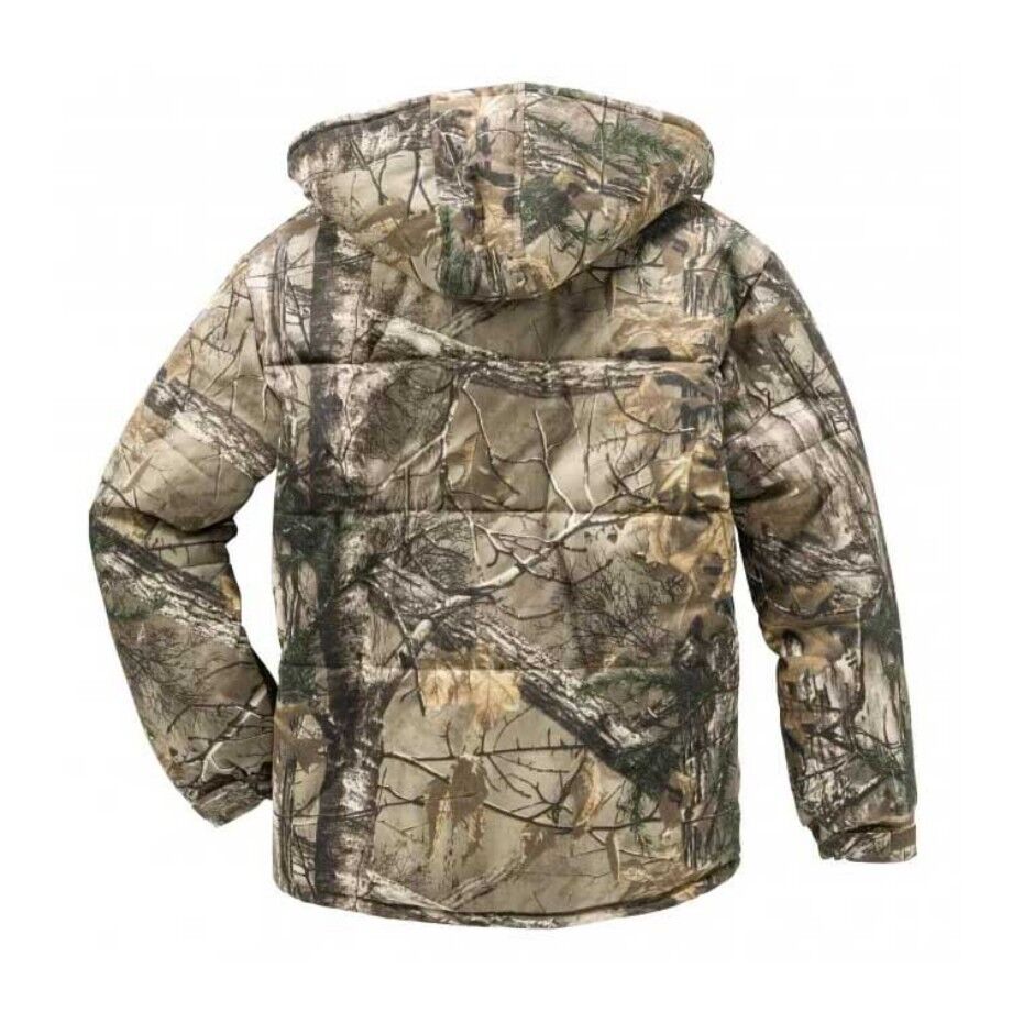 The Vintage Hunting Jacket is a multi-functional jacket for different hunting sports.The shell fabric of Vintage Hunting Jacket is 100% polyester camouflage brushed tricot with TPU lamination 10,000mm/m², 10,000g/m²/24h DWR that is waterproof and silent.Vintage Hunting Jacket with this kind of fabric can keep the hunter dry and warmer even facing sudden rain down. The lining is 100% polyester tricot which has high performance for stretchy which can make the hunter feel comfortable when action.