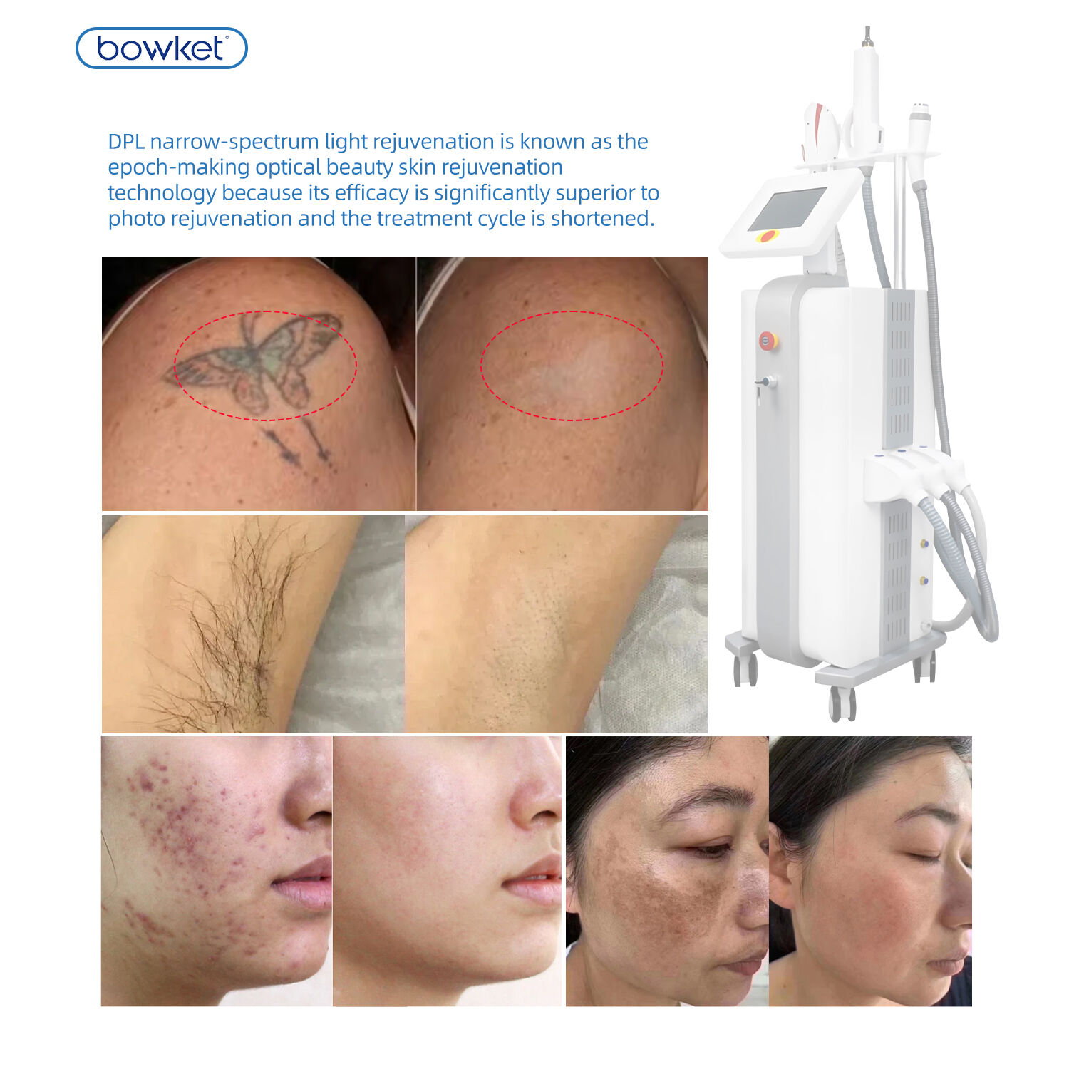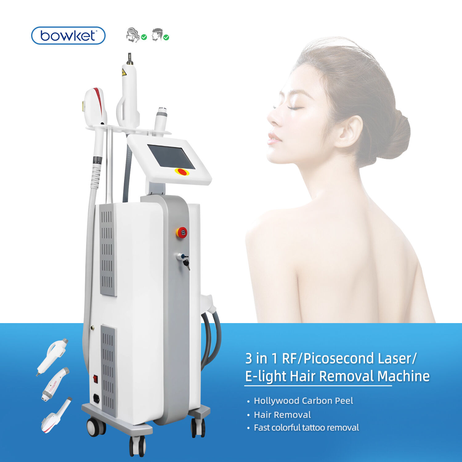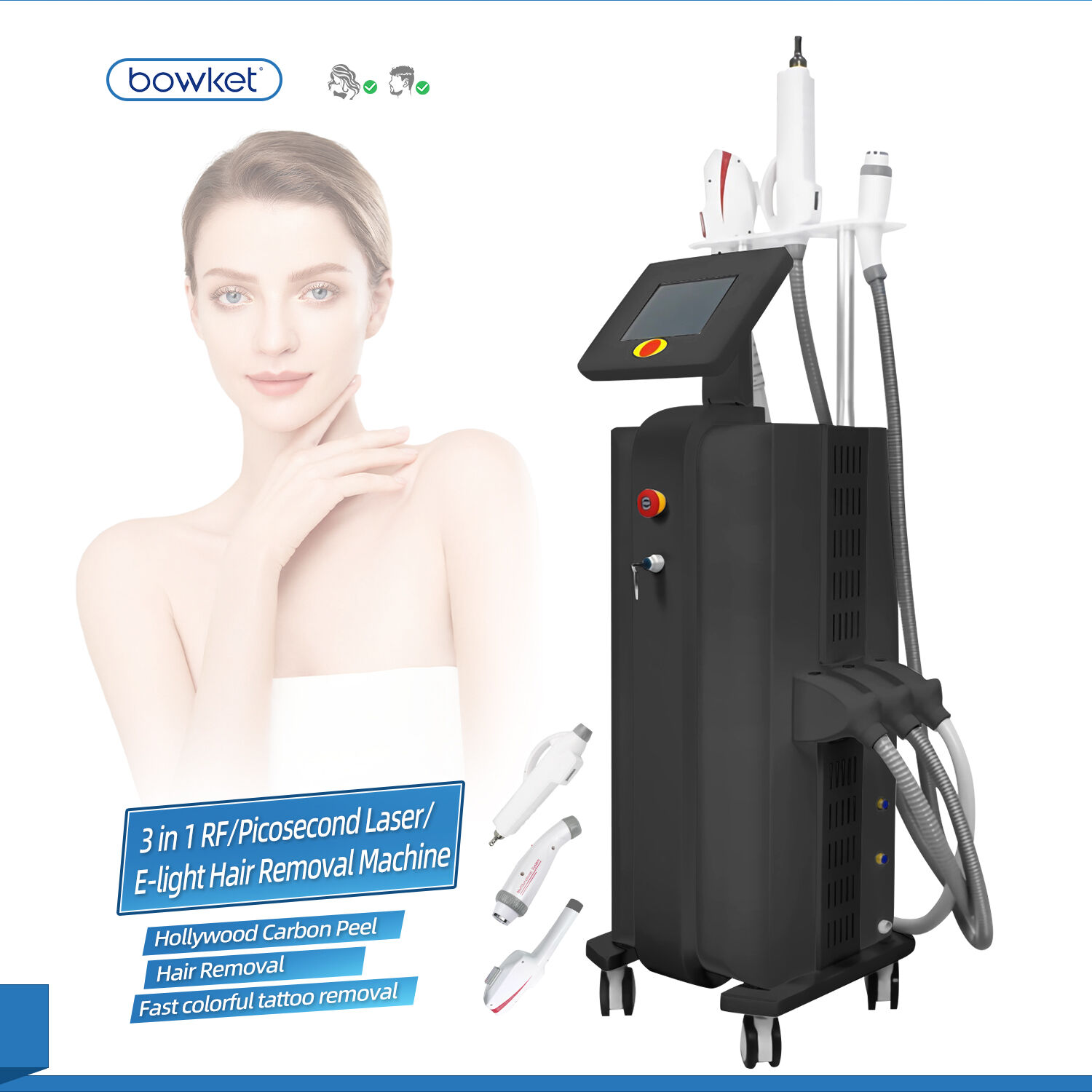 BOWKET 3 in 1 DPL Picosecond Laser RF For Hair Removal Device Skin Rejuvenation Tattoo removal machine