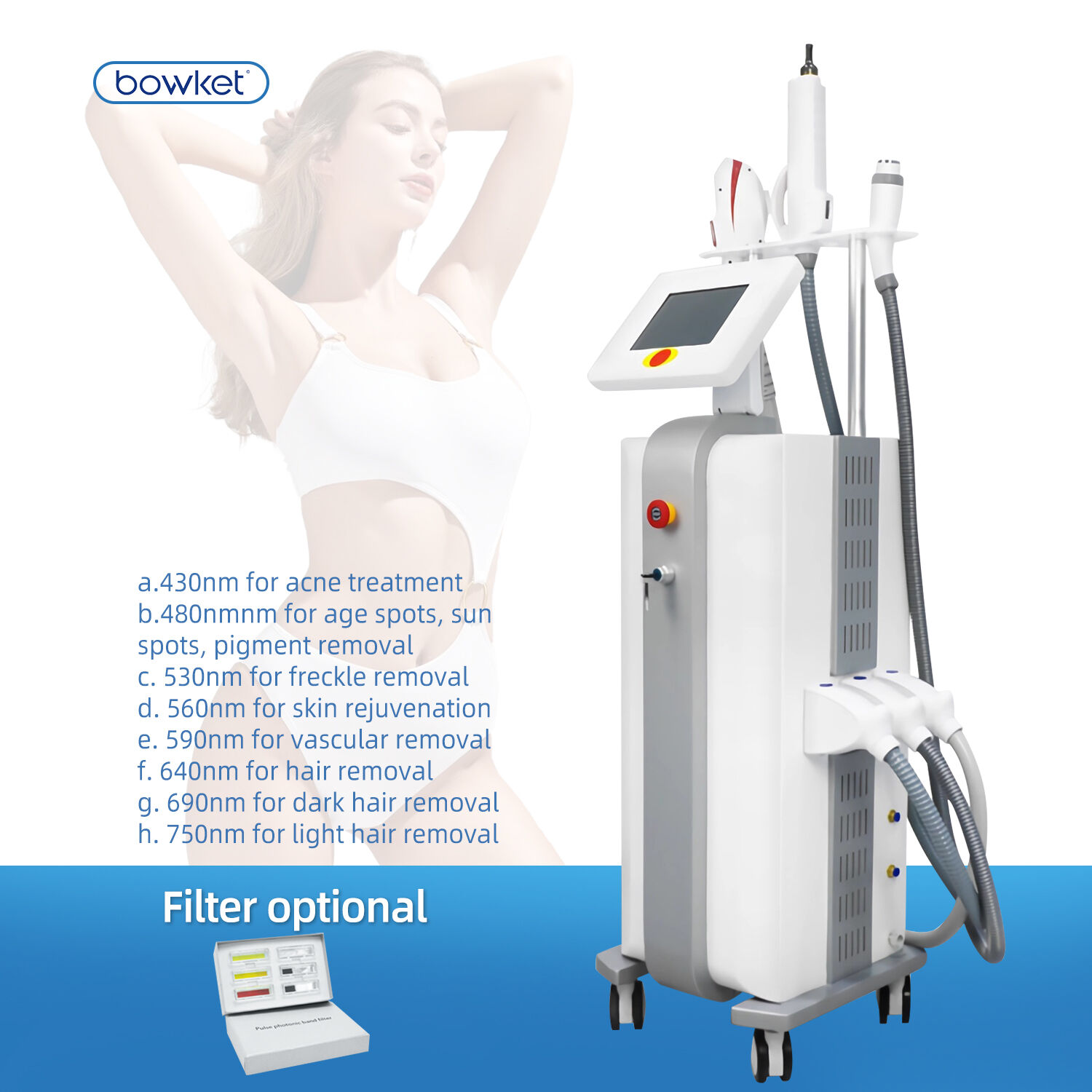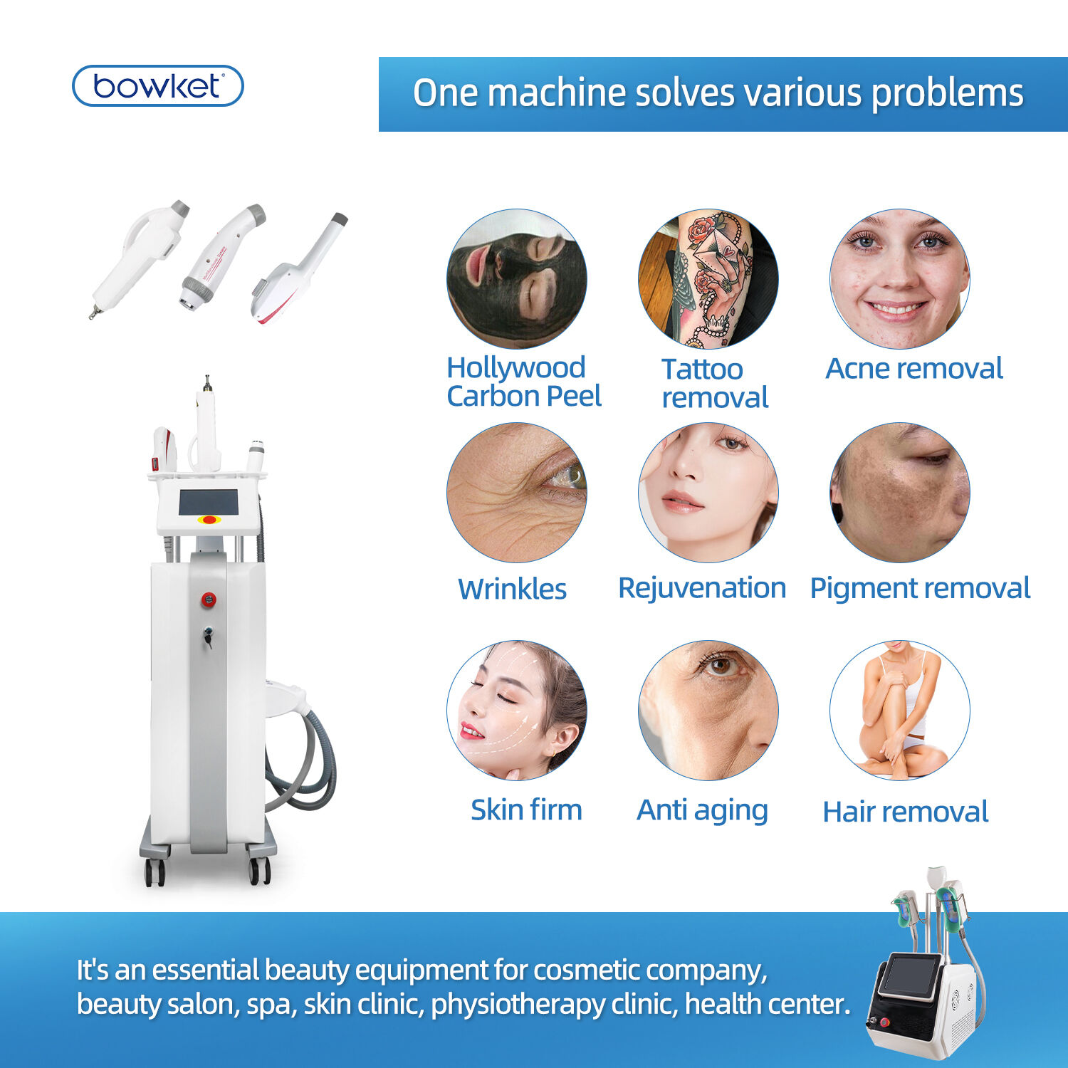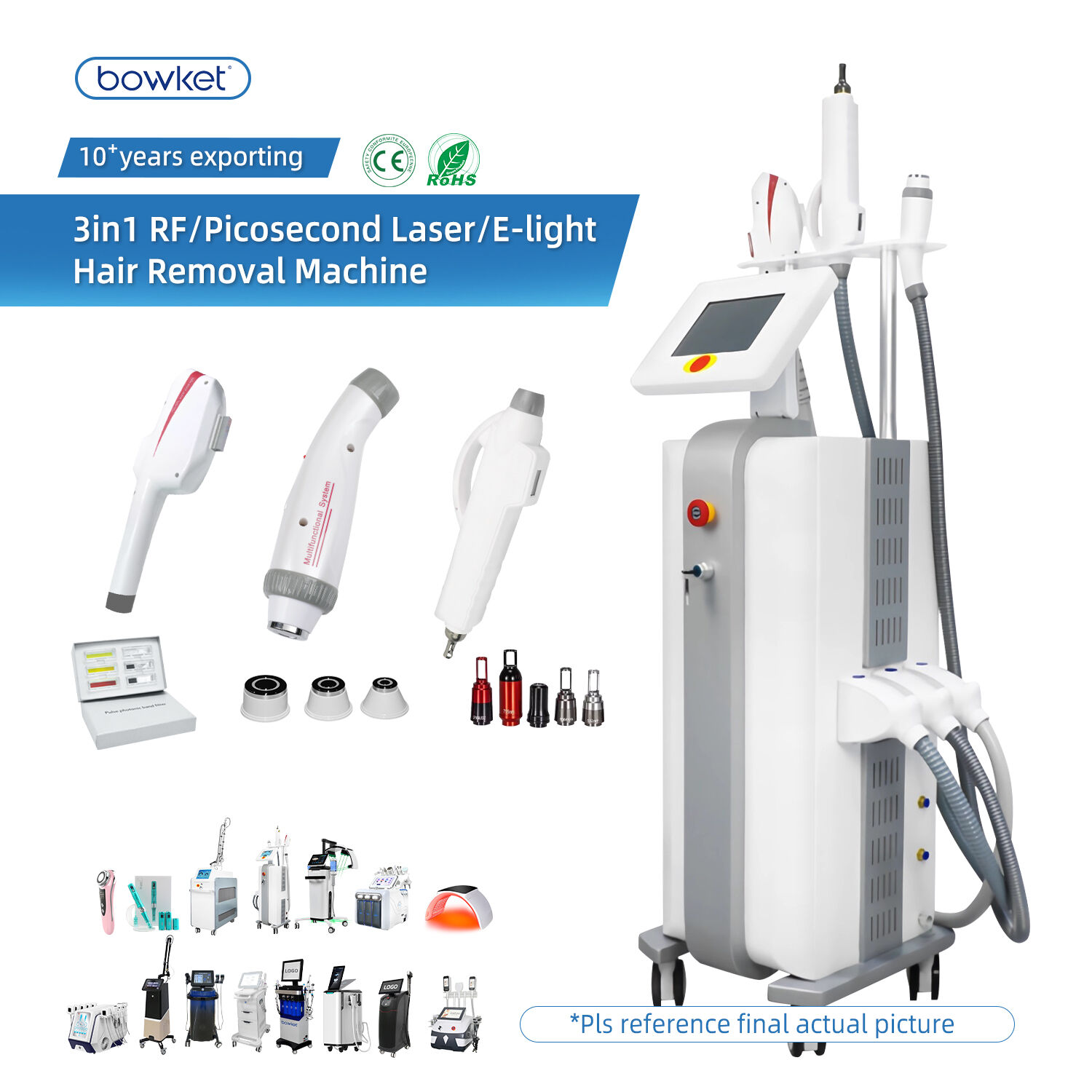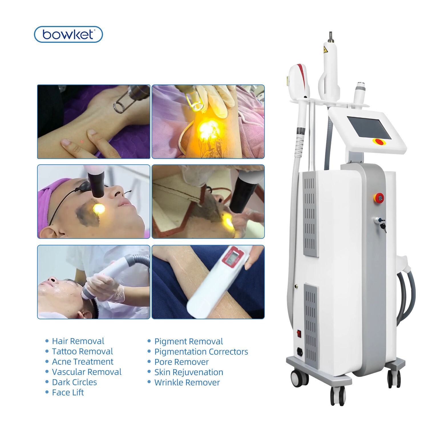 BOWKET 3 in 1 DPL Picosecond Laser RF For Hair Removal Device Skin Rejuvenation Tattoo removal machine