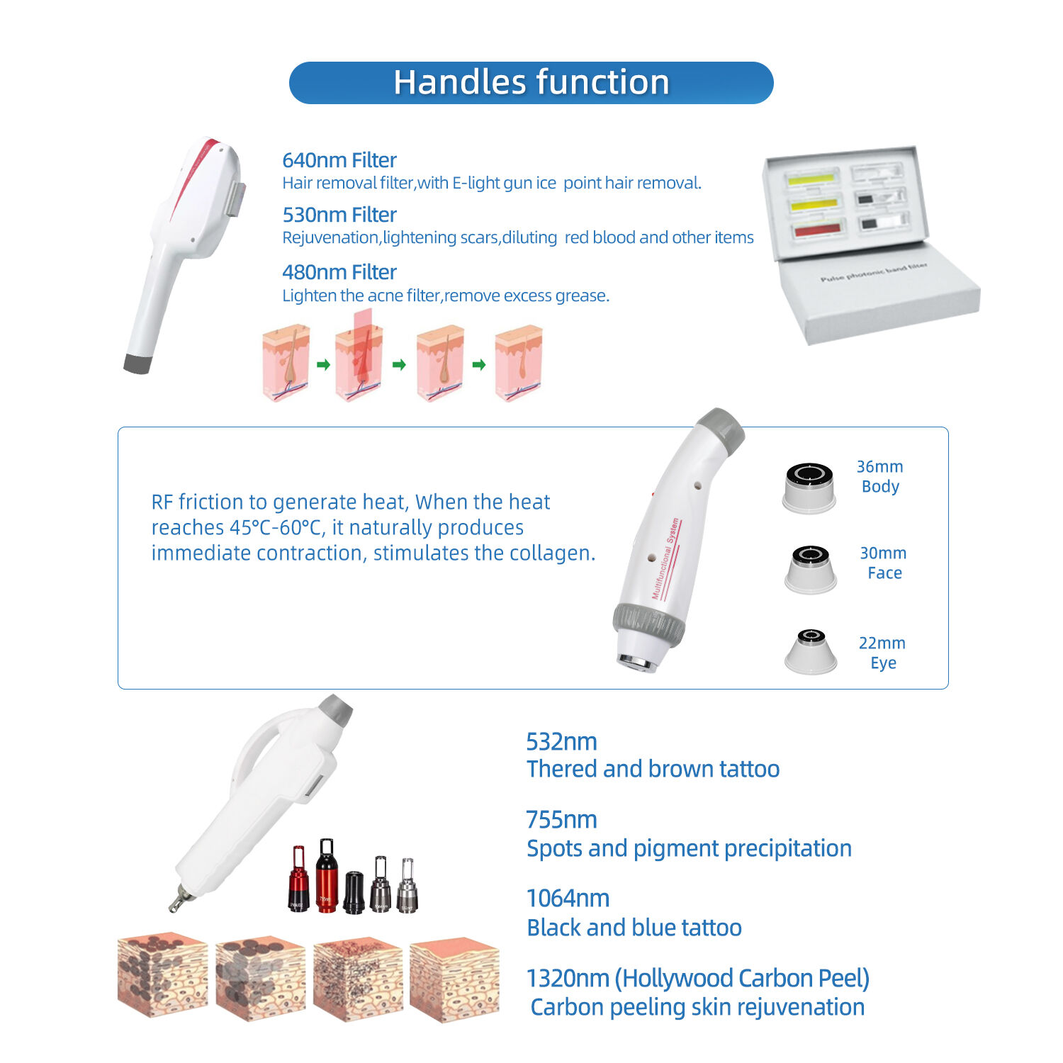 uses the skin's selective absorption of light energy to enhance the absorption of radio frequency by skin tissue. At the same time, the radio frequency surface contact cooling technology eliminates the discomfort and complications caused by the heat effect of strong light and strong, and has a breakthrough improvement in efficacy and safety.