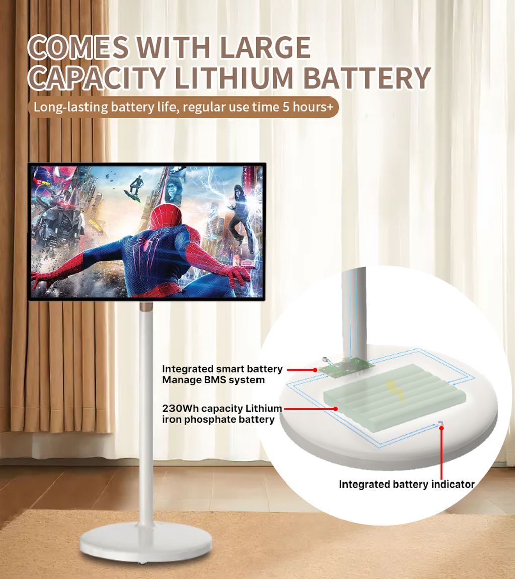 Portable Smart Touchscreen Display with Battery | Floor Standing Android Digital Screen for Home, Office, and Retail