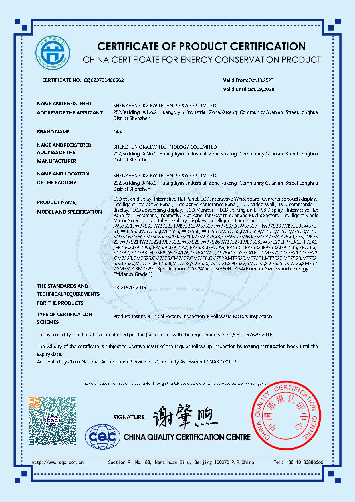 | Size | 65inch | 75inch | 86inch | 98inch | 110inch |