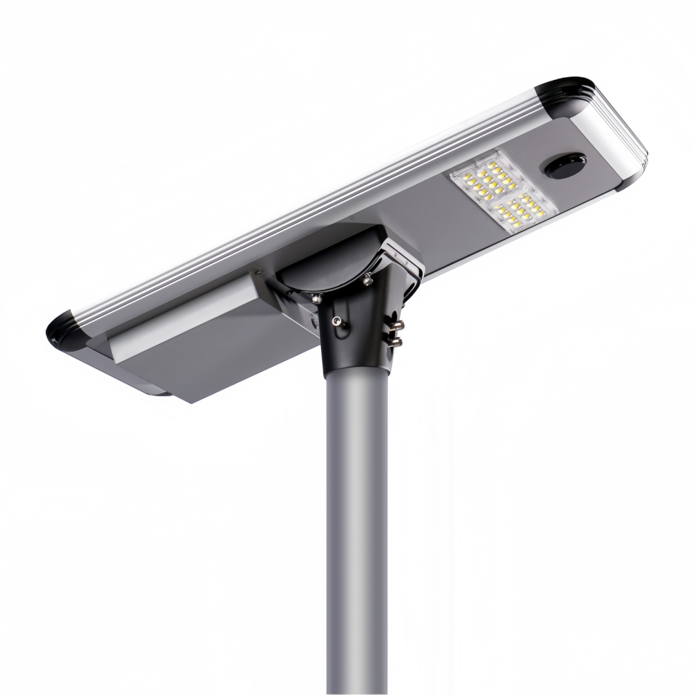 Introduction: Illuminate your streets, highways, parking lots, and squares with our advanced All in One Solar Street Lamp. Designed for European markets, this Integrated Solar Street Light combines high-efficiency solar technology with robust performance, offering a sustainable and cost-effective lighting solution. Featuring a Grade A Monocrystalline Silicon solar panel and a high-capacity LiFePO4 battery, it ensures reliable illumination even during 2-3 overcast or rainy days. The SMD 5050 LEDs provide exceptional brightness with a luminous efficacy of 220 lm/W, adjustable color temperatures from 2700K to 6500K, and a wide beam angle of T2M / 160° × 80°. Its durable cast aluminum body boasts an IP65 rating, ensuring resistance to harsh weather conditions. This Integrated Solar Street Light is ideal for a wide range of applications including roads, pathways, residential areas, landscapes, theme parks, hotels, offices, sports stadiums, and warehouses. With a charging time of only 4-6 hours under effective sunlight and a service life of up to 8 years, it represents a modern and energy-efficient street lighting choice.