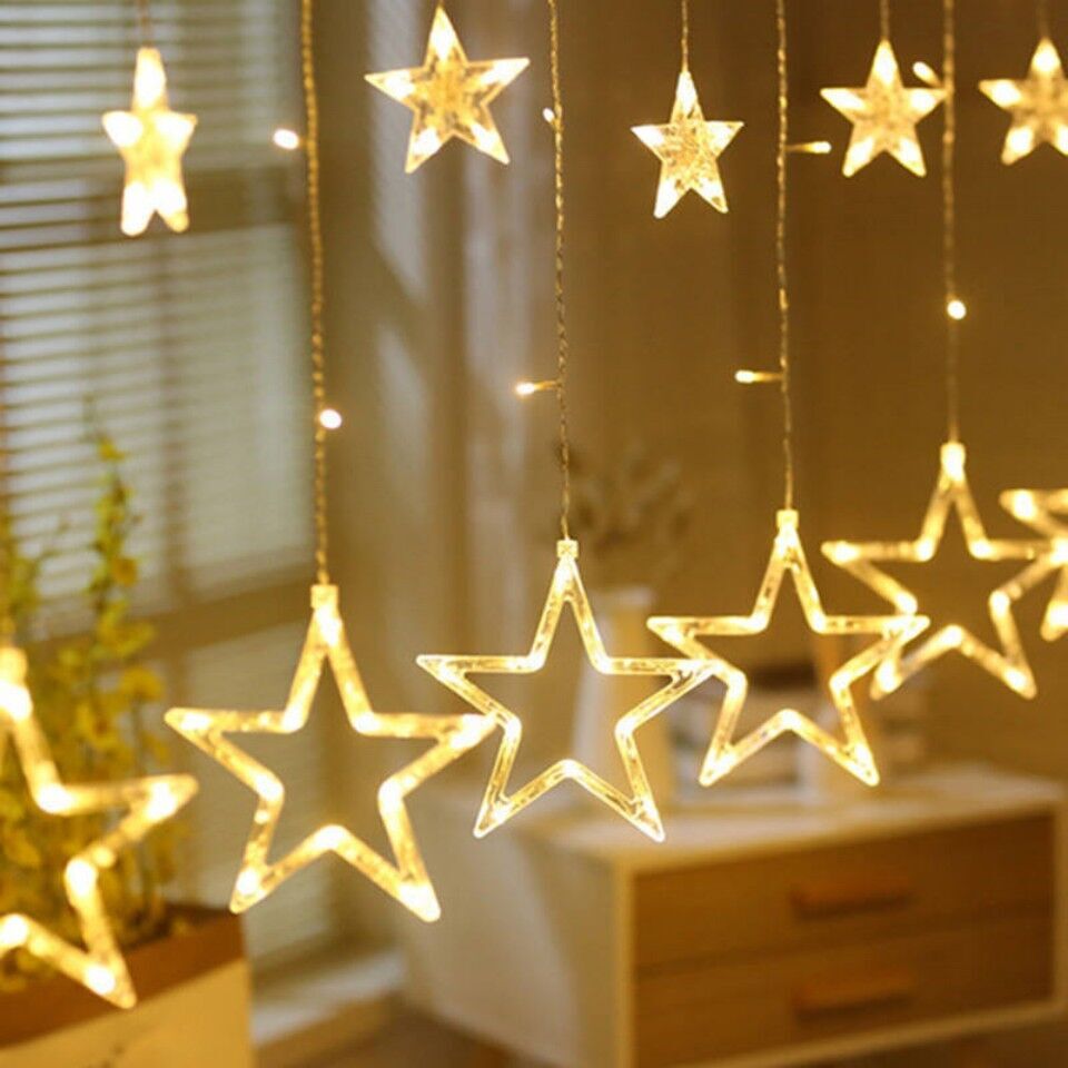 This Xmas hanging star lights, romantic atmosphere. Perfect for indoor and outdoor decorations. Christmas, Valentine's Day, party, wedding, home, festival, holiday, restaurant, hotel, commercial building, shopping center, etc.