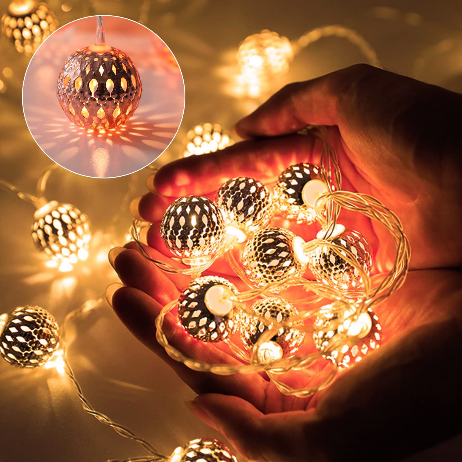 | Globe String Lights,Decorative Diwali Lanterns Lights Battery Powered with Timer Ramadan Decoration for Indoor Bedroom Party |