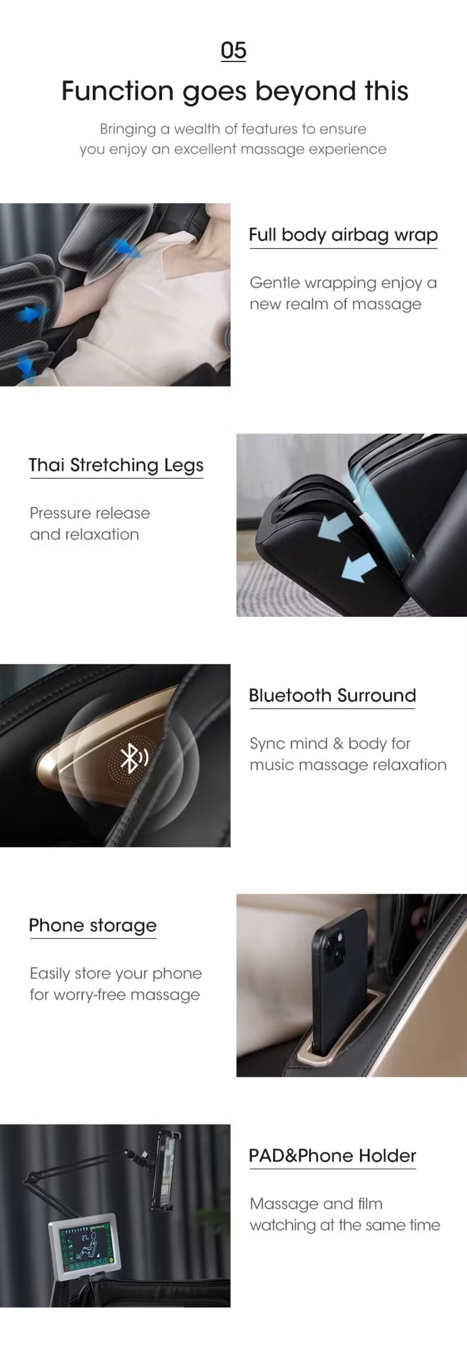 We are a professional factory with extensive experience in producing personal care appliances. When you choose this Massage chair, you benefit from: