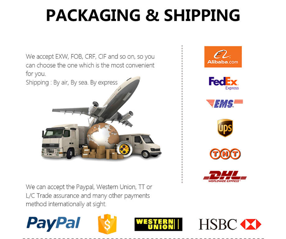 | Shipments | 1) By SEA, AIR, or Express couriers directly (such as Fedex,TNT,UPS,DHL). 2) Can be shipped by your forwarder, or by our own fowarder, it depends 3) Destination Port: Xiamen port, Fujian, China 4) Can be LCL shipment, or FCL shipment |