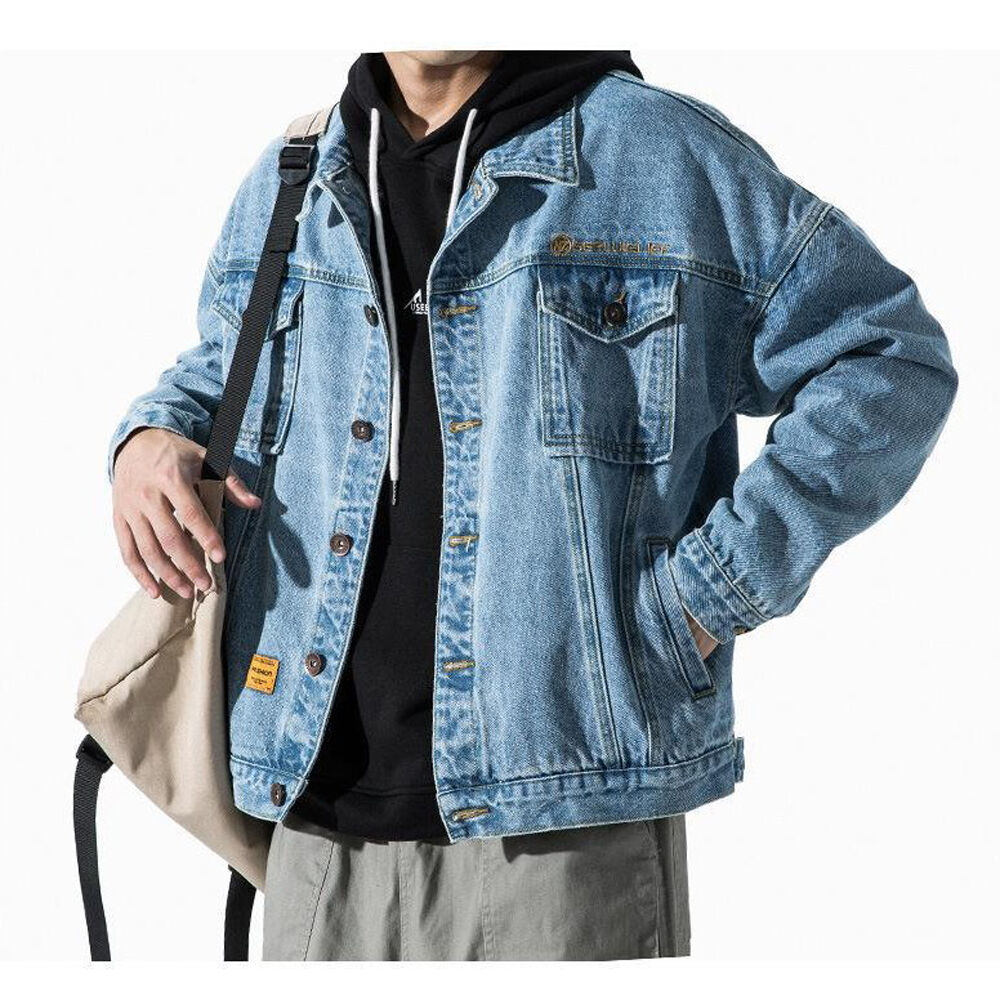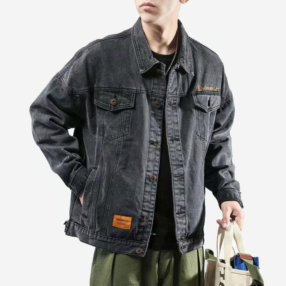 | Quality | HighMinimalist Men Denim Shirt Jacket Simple Solid Color Loose Fit Casual Coat |