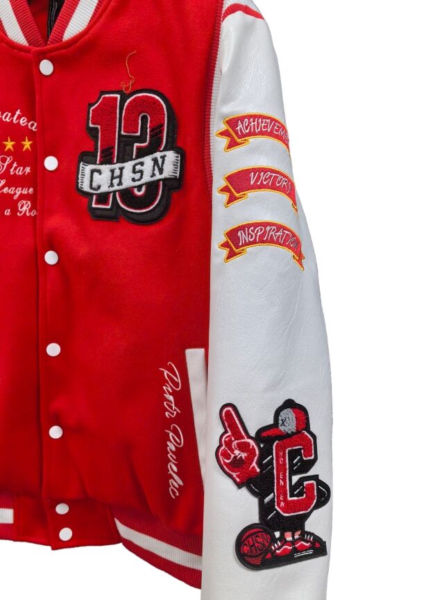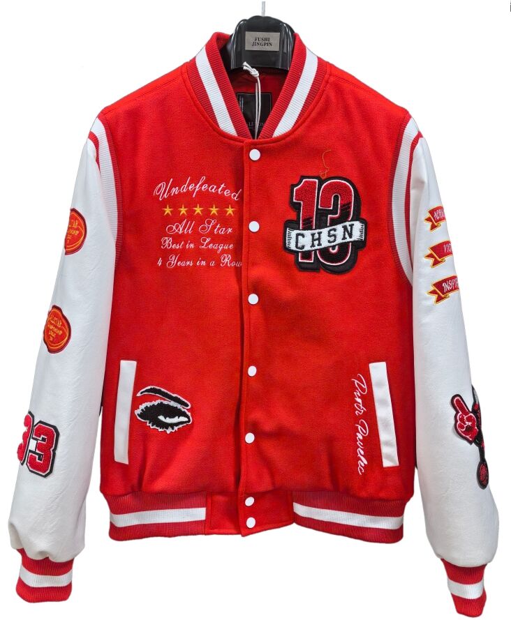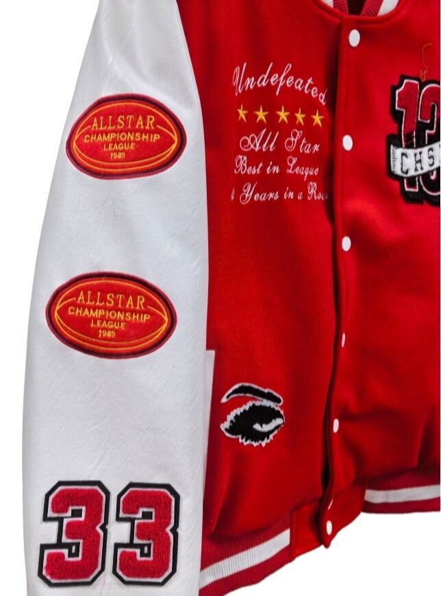 Embroidered Patch Baseball Coat Street wear Vintage Patches Men Varsity Jackets red and white