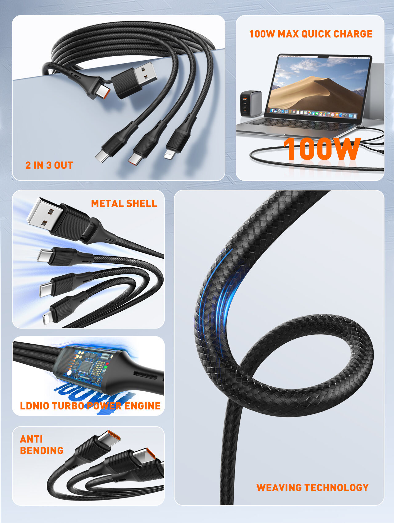2. The product form is C-C1:100W,C-I:30W,C-C2:12W ; USB-C1: 30W, USB-I: 12W, USB-C2: 12W; Use on same time,intelligent step-down: total output 5V3A