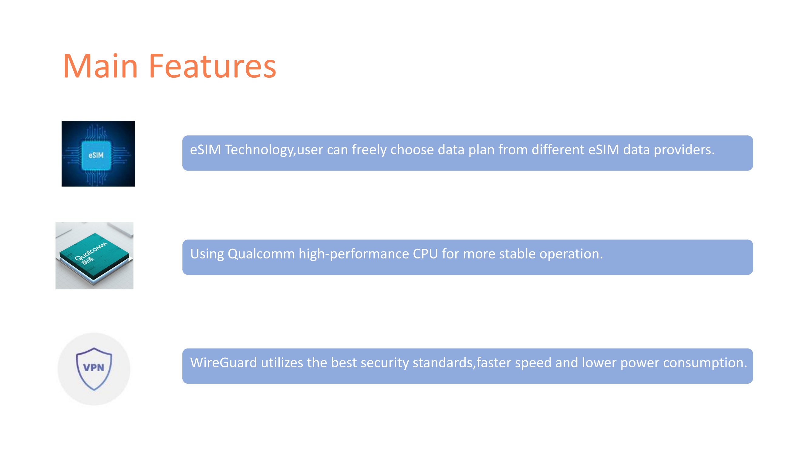 eSIM mode: No SIMs needed, With built-in LPA program and eSIM technology, user can freely choose data plan from different eSIM data providers or telecom carriers by scanning QR code or download eSIM profile from WEB,