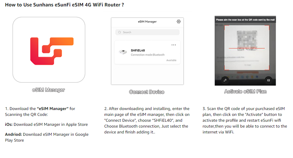 3- Scan the QR code, active it and waiting about 1 minute, after active success,reboot the SHFiEL40 eSIM router.