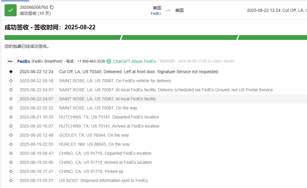 Transit time is 5-16 days.