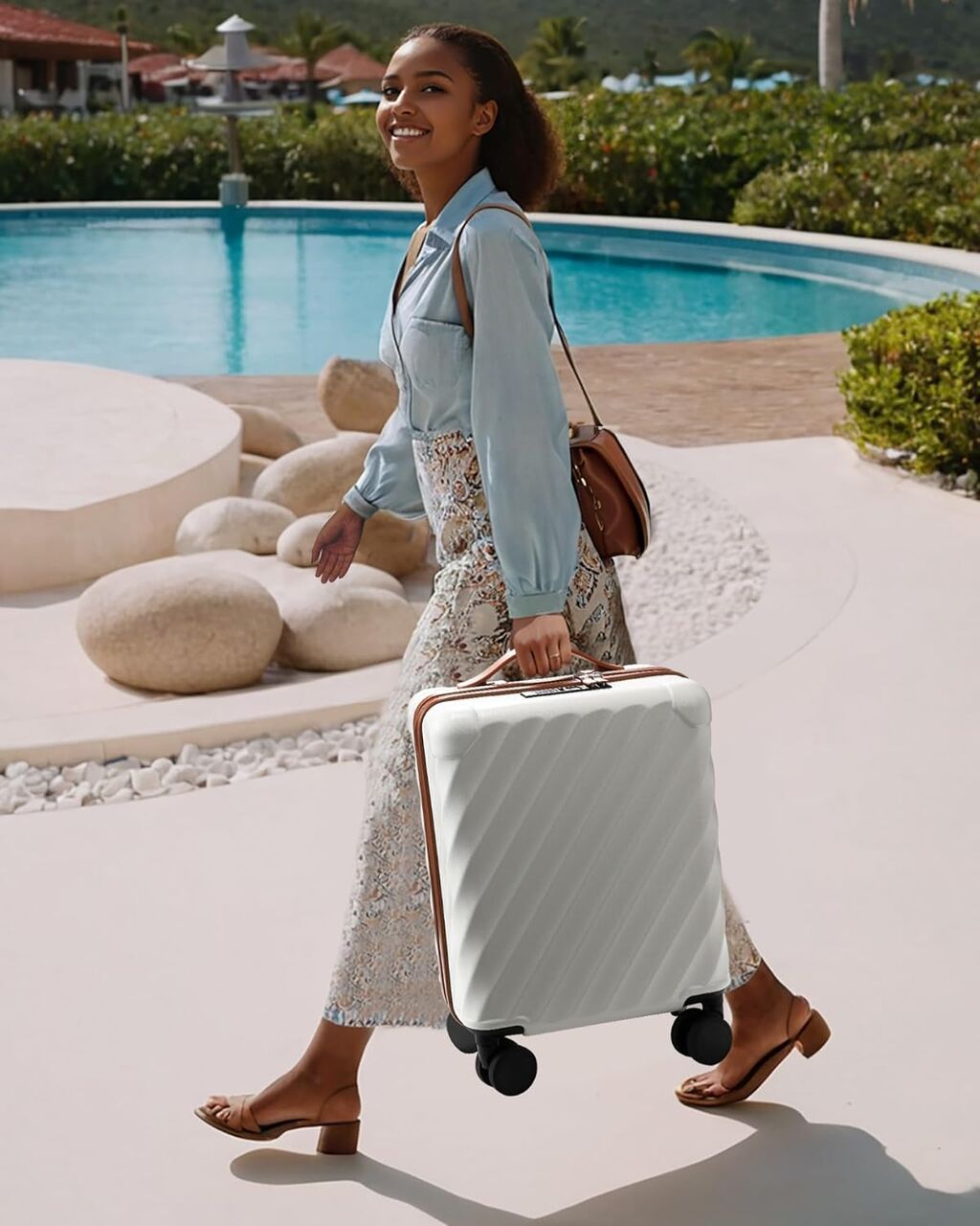 This versatile trolley case features 8 silent 360° spinner wheels, ensuring smooth rotation in every direction. Whether navigating busy airports, cobblestone streets, or hotel lobbies, the fluid movement makes it effortless to maneuver, living up to the practicality of a reliable trolley luggage.