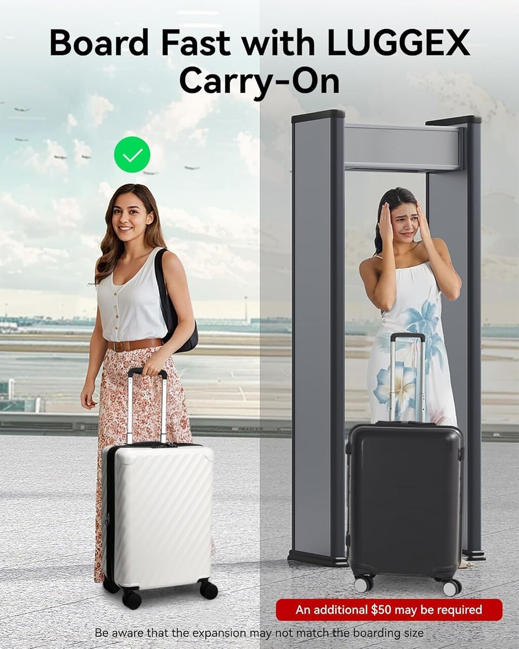 Measuring 17.5x12x8 inches and weighing just 5.2 lbs (with a 23L capacity including spinner wheels, handle, and accessories), this compact PC luggage is designed for seamless travel. As an airline-approved underseat option, it fits perfectly under most airline seats, letting you skip the hassle of check in luggage and enjoy quick, stress-free boarding—ideal for short trips or as a handy companion to larger luggage.
