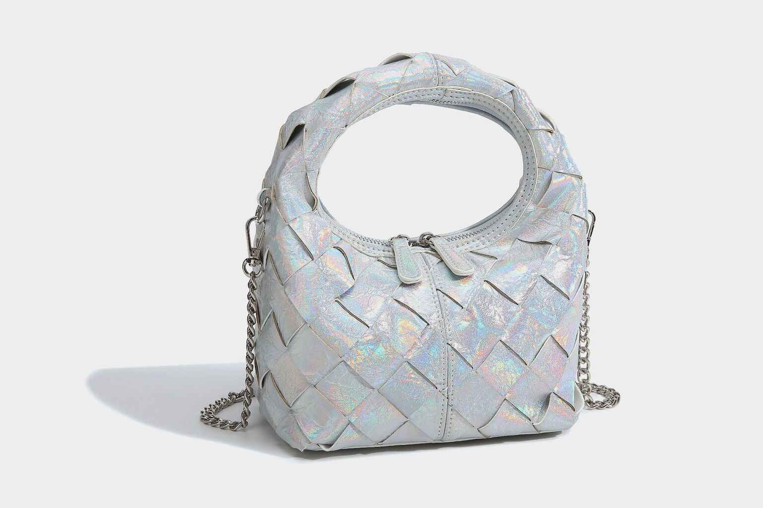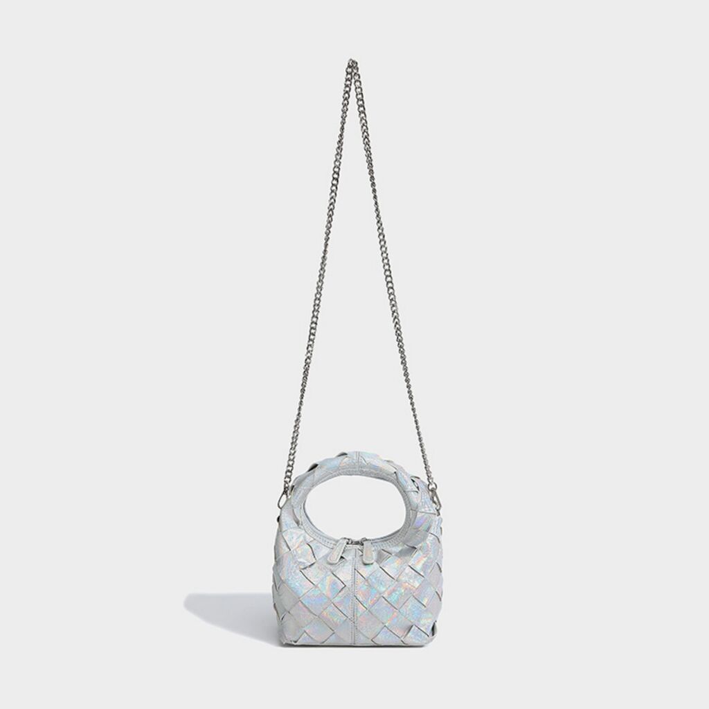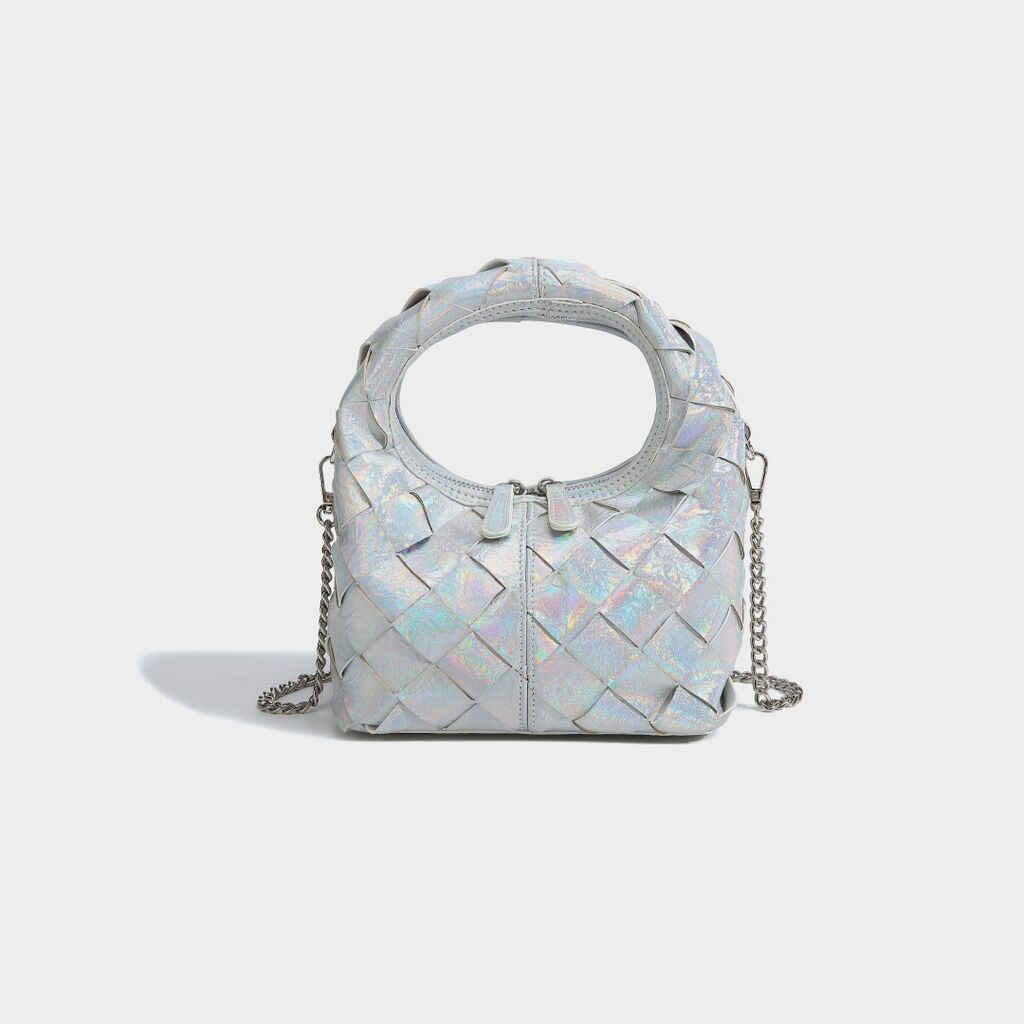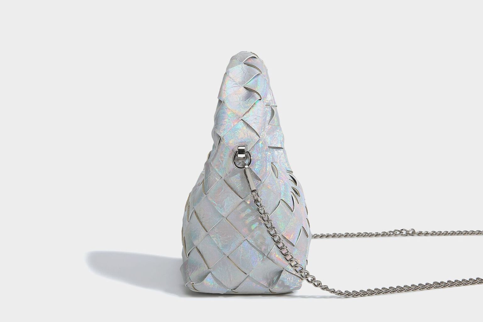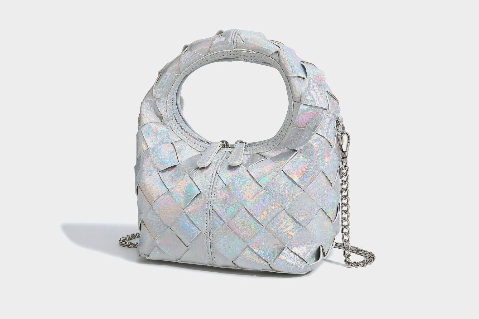 Wholesale New Niche Design Silver Small Knitted Handbag Dumpling Shape Chain Evening Bag Shoulder Crossbody Bag for Women