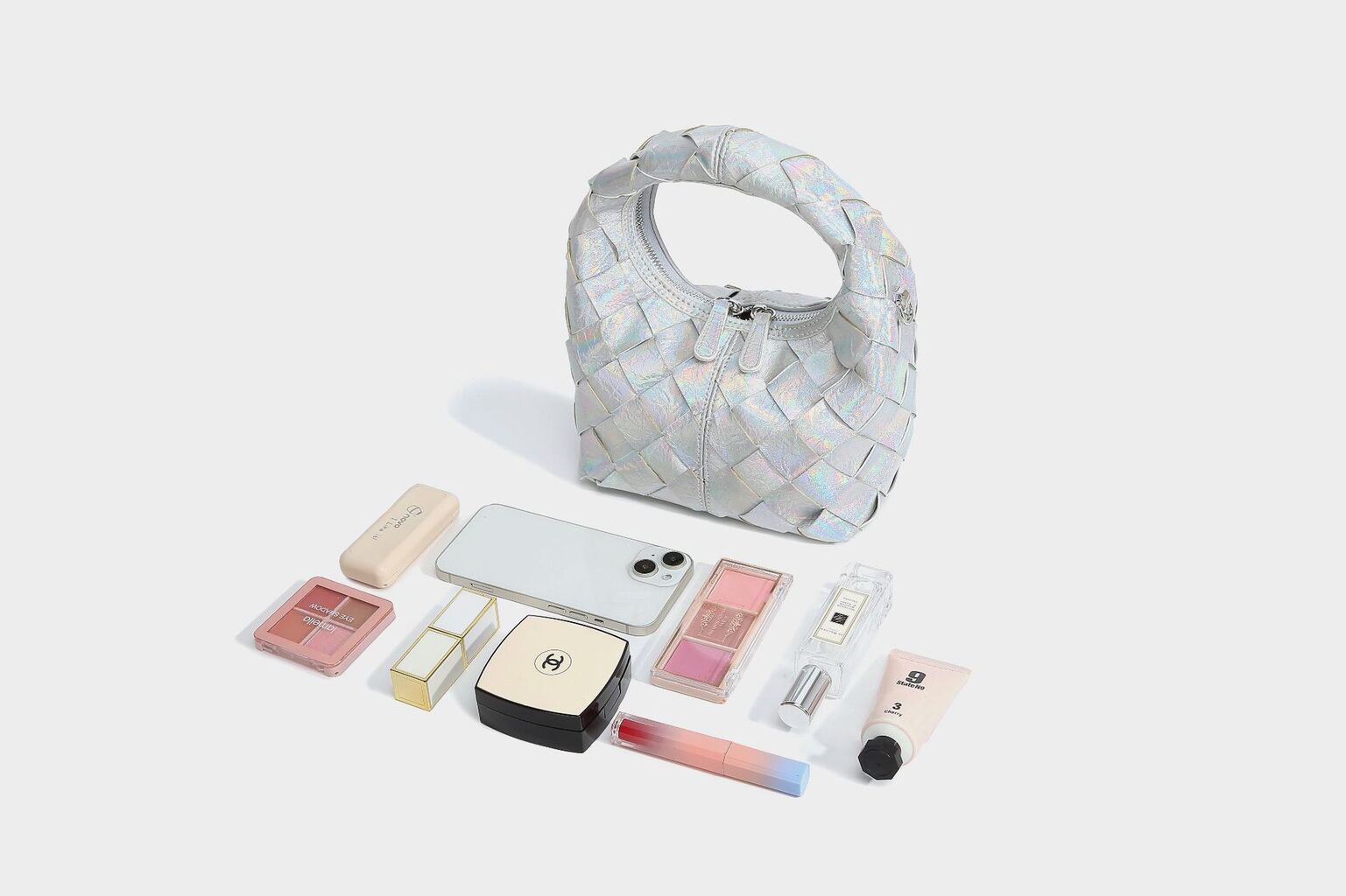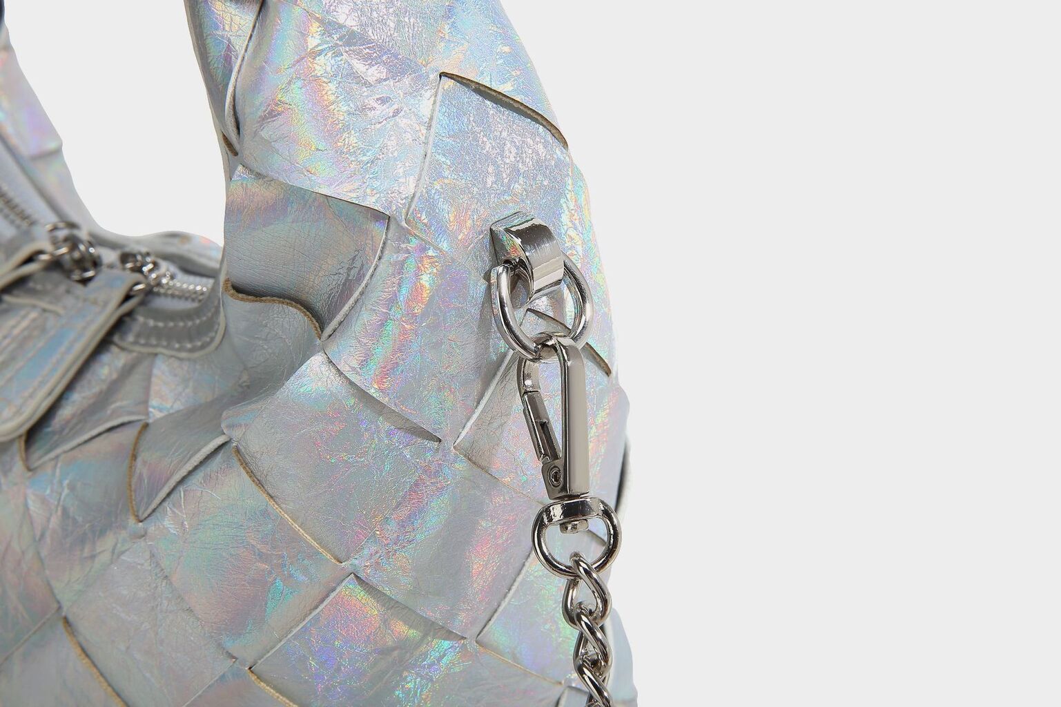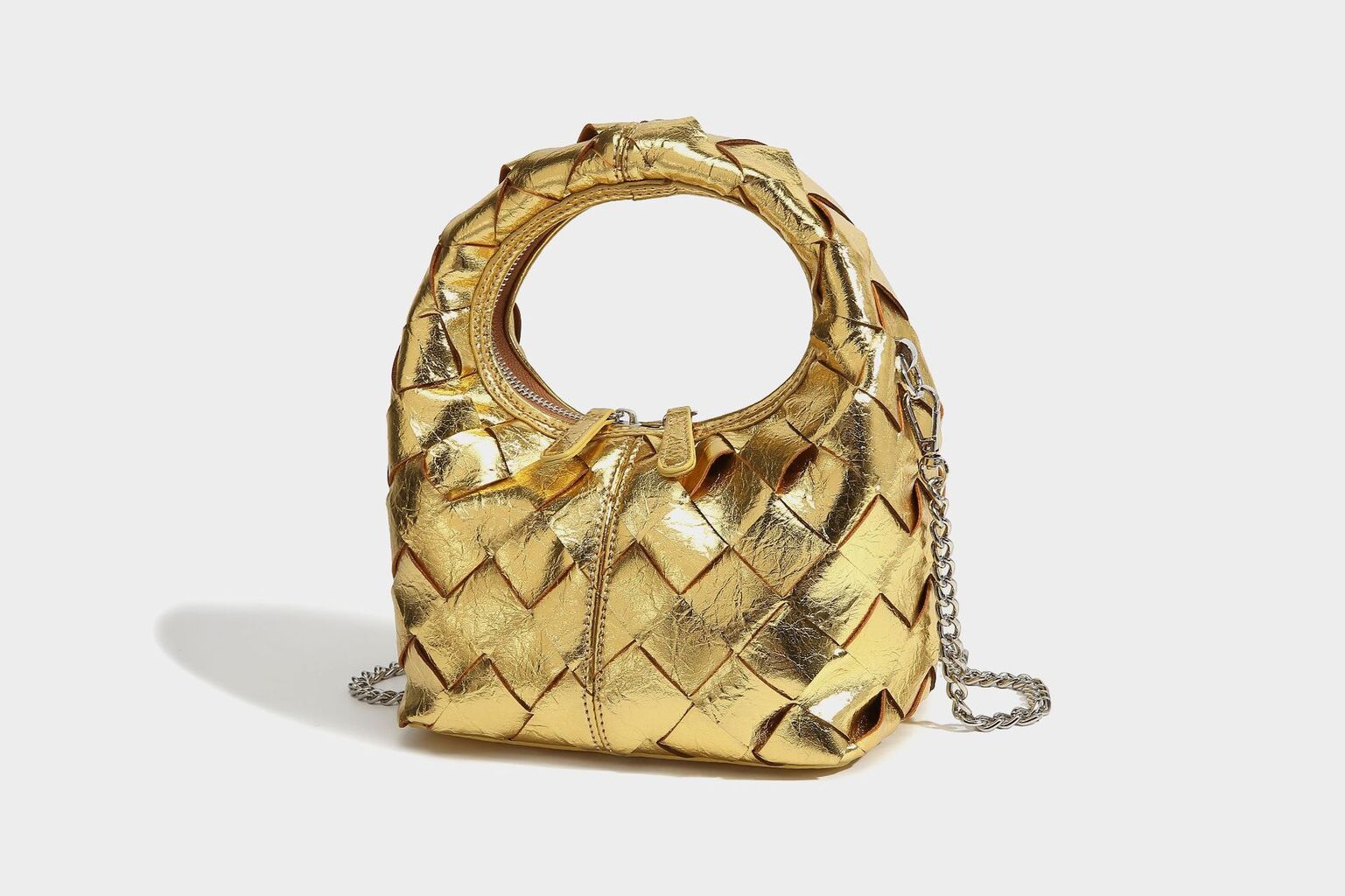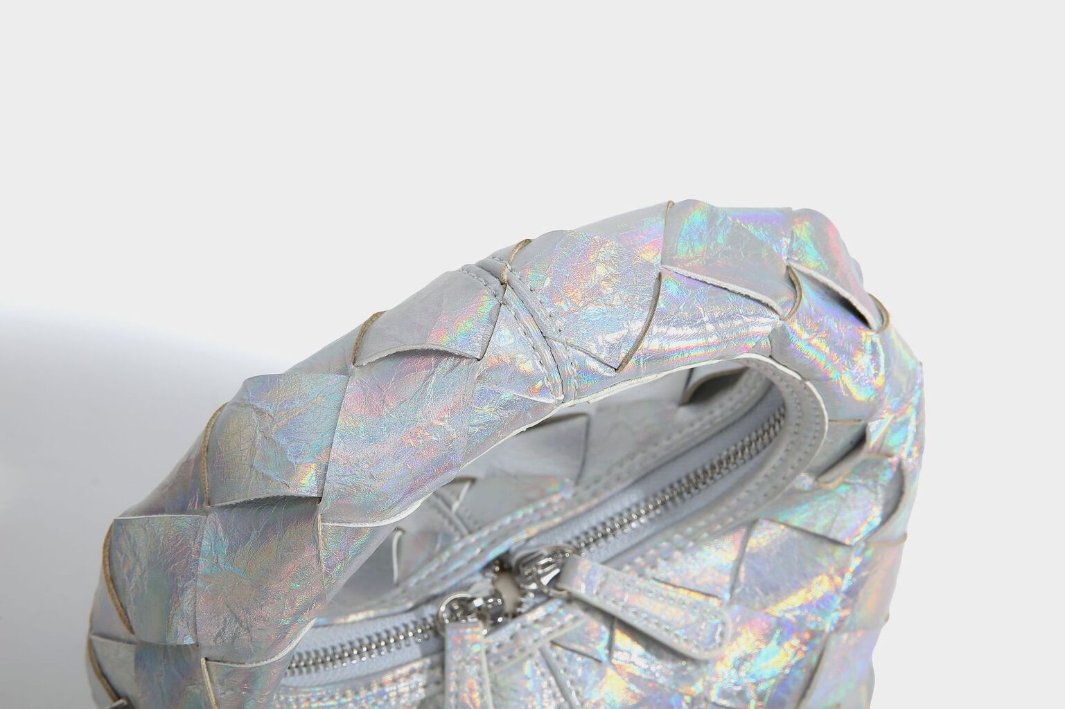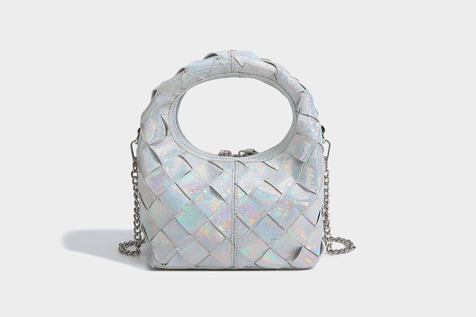 Wholesale New Niche Design Silver Small Knitted Handbag Dumpling Shape Chain Evening Bag Shoulder Crossbody Bag for Women