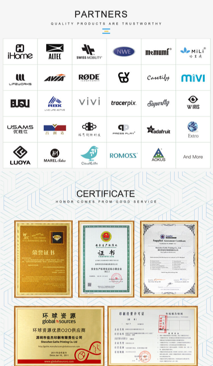 - Pringting handling: Die-cut to different shape Offset printing or silk screen printing, Printed by Heidelberg or Komori printing