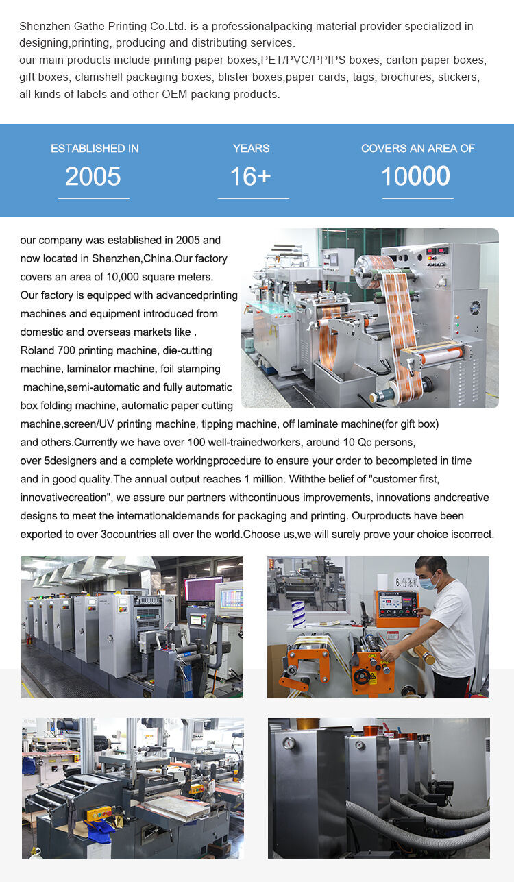 - Surface finish:Matte/gloss lamination,foil stamping,touch coating,aqueous coating,spot UV, varnishing, embossed