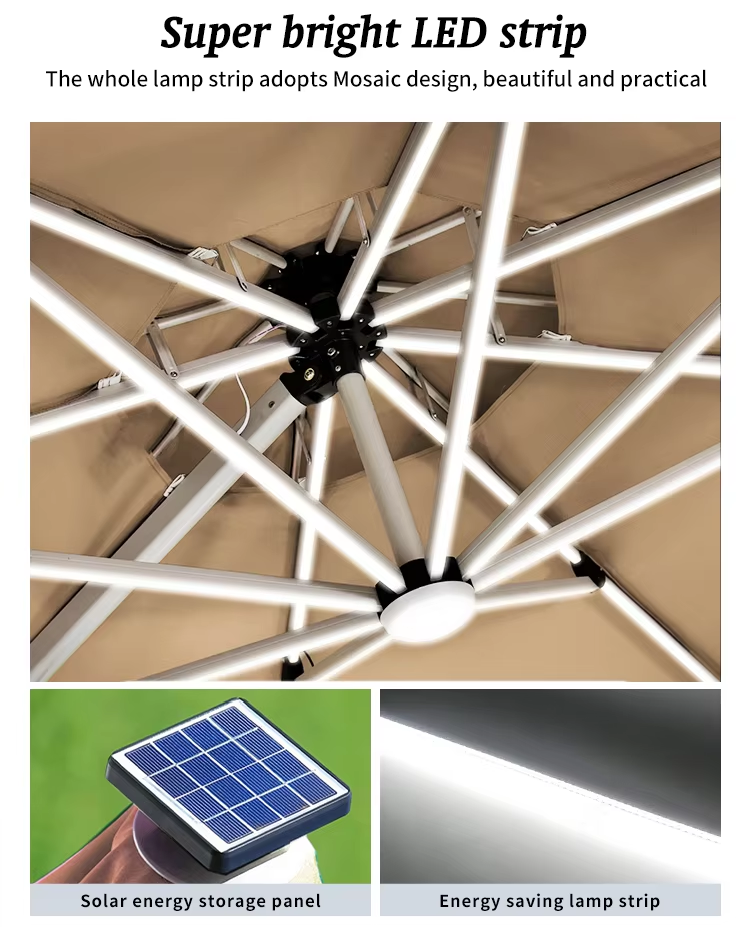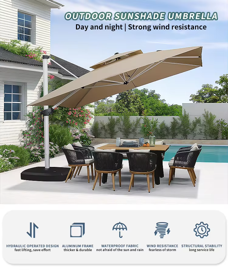 Ideal for patios, gardens, poolsides, or outdoor cafes, this umbrella stands strong through sun, rain, and wind—day or night.