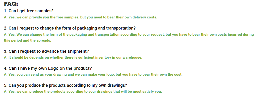 | FOB Port | Tianjin | Lead Time | 10–15 days |