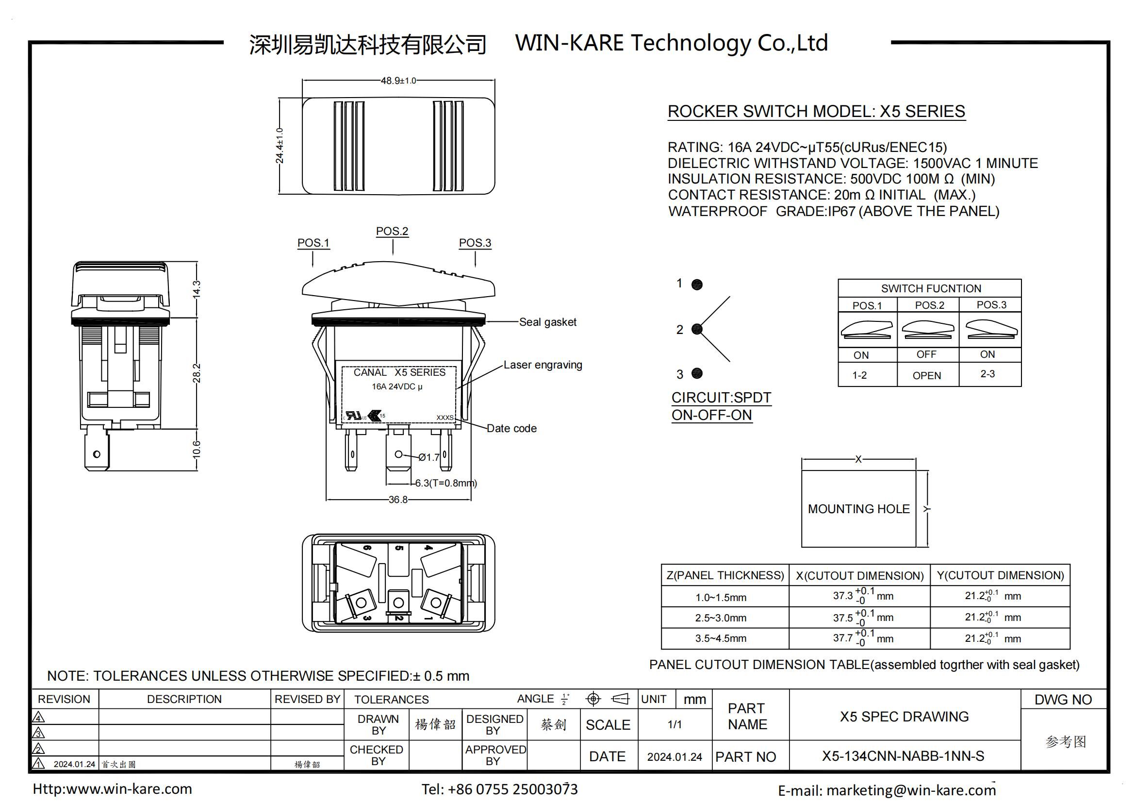 | Circuit | ON—OFF-ON (SPDT) |