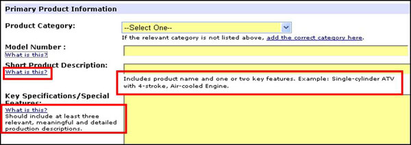 Writing tips for Short Product Description and Key Specifications/Special Features fields are now available. Describing your products is critical to attracting buyers' attention and differentiating them from your competitors'. Review our suggestions and examples by clicking the "What is this?" links, and improve the way you market your products.